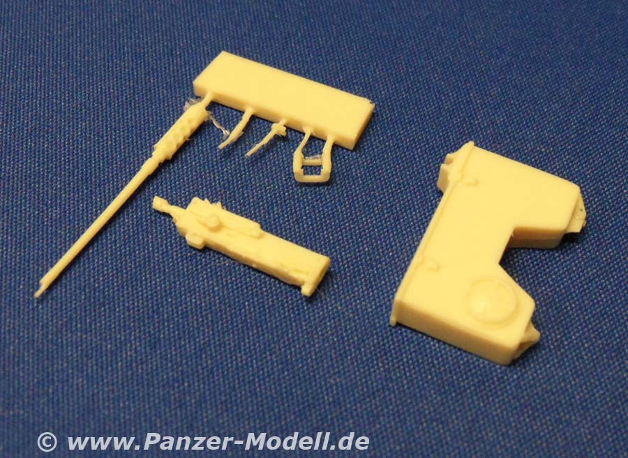 Der vorliegende Umbausatz mit der Nummer 35176 ersetzt die Drehringlafette des M-ATV durch eine ferngesteuerte Waffenstation. Die Waffenstation besteht aus der neuen Luke, dem davor liegenden Unterbau für die Waffenstation per se und natürlich der Selbigen selbst samt MG. Natürlich wurde auch an den Bildschirm und den Joystick im Innenraum gedacht. Die Luke ist geschlossen dargestellt, was aber durchaus in Ordnung ist, da sie selten offen zu sehen ist. Wunderbar gegossen und (wie ich aus eigener Erfahrung weiß) sehr passgenau, weiß nur der MG-Lauf nicht so ganz zu überzeugen. Ein gedrehtes Metallteil ist hier eben einfach unschlagbar. Zum Glück gibt’s diese inzwischen recht „taschengeldfreundlich“. Fazit: Für rund 20 Euro erhält man hier eine echte Alternative zur O-GPK-Drehringlafette. Ob man nun das ganze MG oder nur den Lauf austauscht bleibt jedem selbst überlassen. Machen sollte man es aber. zurück |