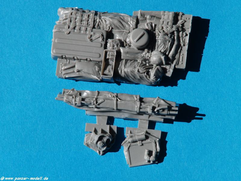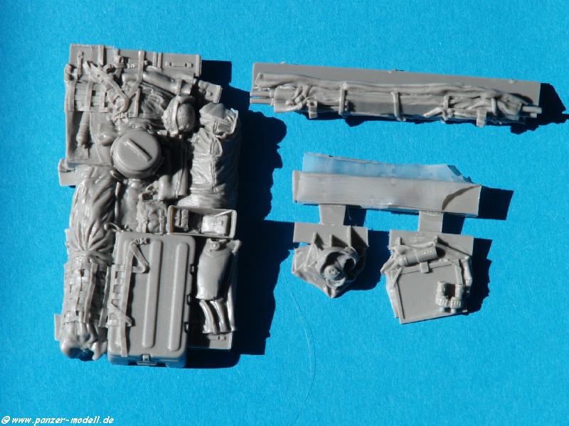 Der Stryker ist grade brandneu auf dem Markt, da gibt es schon die ersten beiden Zubehör-Sets. BLAST-Models hat für den Stryker von AFV-Club das Set Stowage for Stryker Set No.1 , BL35114K herausgebracht, welches aus vier Teilen aus dunkelgrauem Resin besteht. Die Qualität der einzelnen Teile ist klasse. Es müssen lediglich an paar Angüsse entfernt werden.