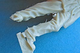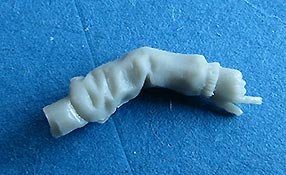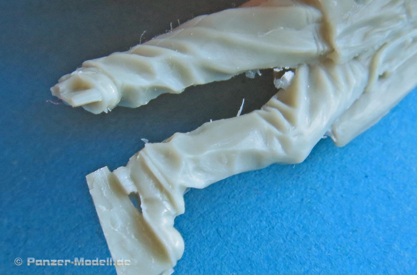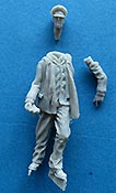 Der linke Arm liegt einzeln bei und muss noch angeklebt werden - auch dieser ist gut gemacht und fügt sich der guten Faltendarstellung des Körpers an. Der rechte Arm ist bereits mit angegossen und sogar das Doppelfernrohr in der Hand ist bereits angegossen.