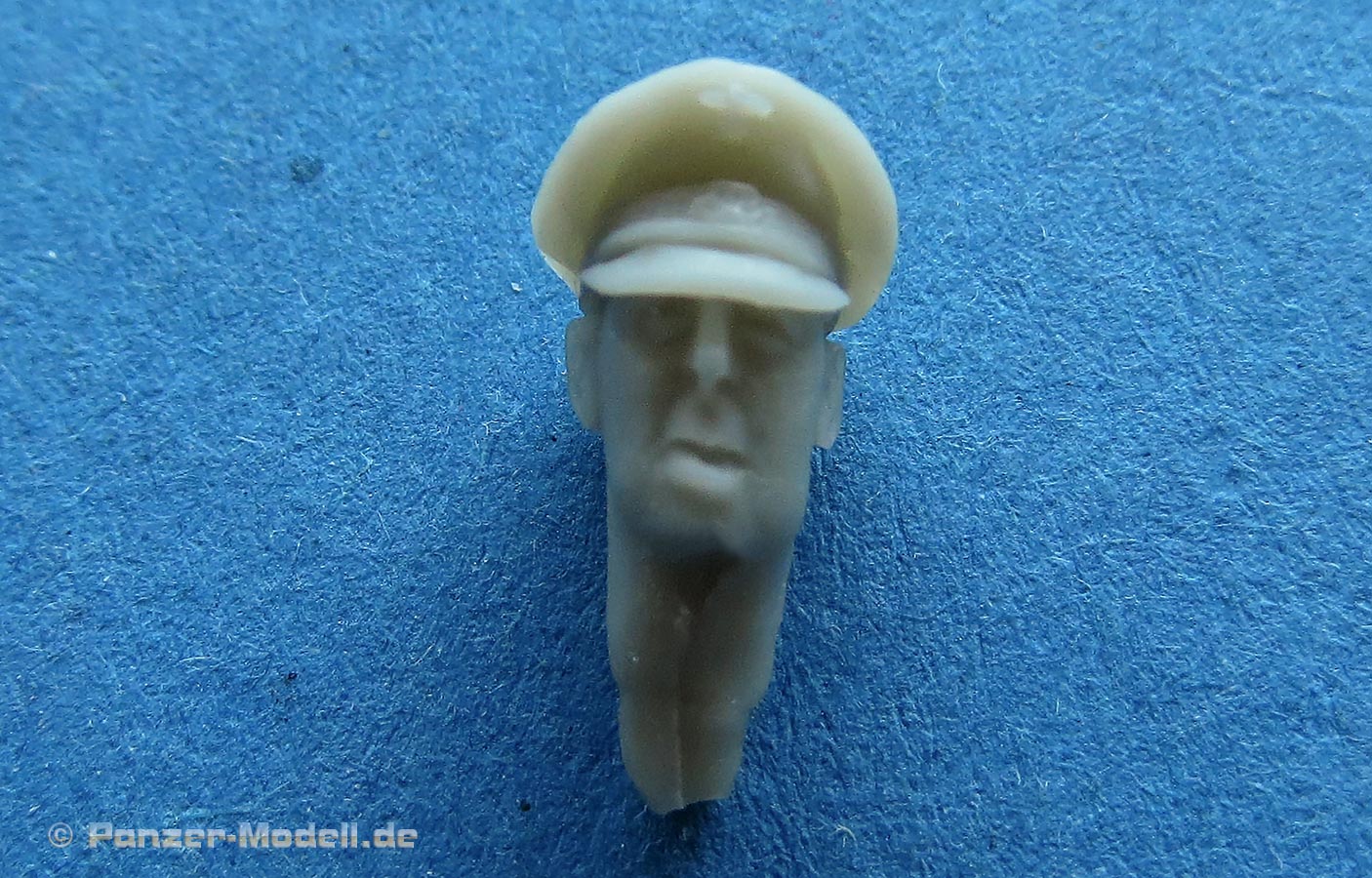 Der Kopf ist bereits mit Schirmmütze gegossen und diese ist sehr schön und filigran dargestellt und gegossen.
