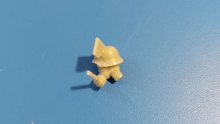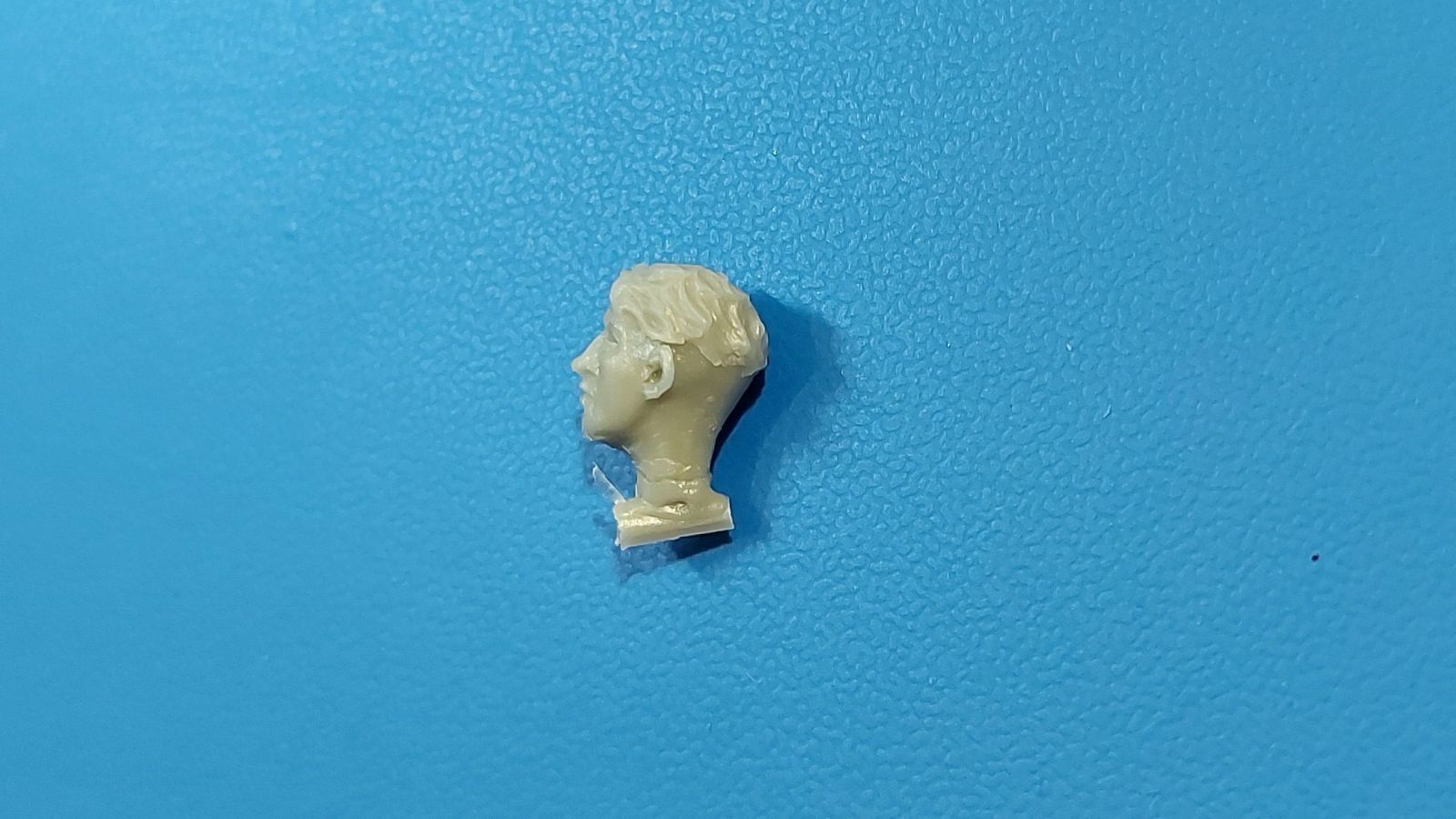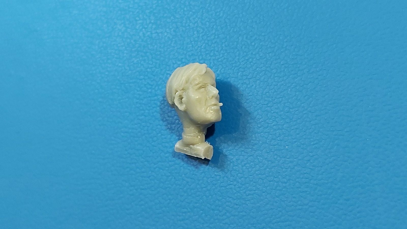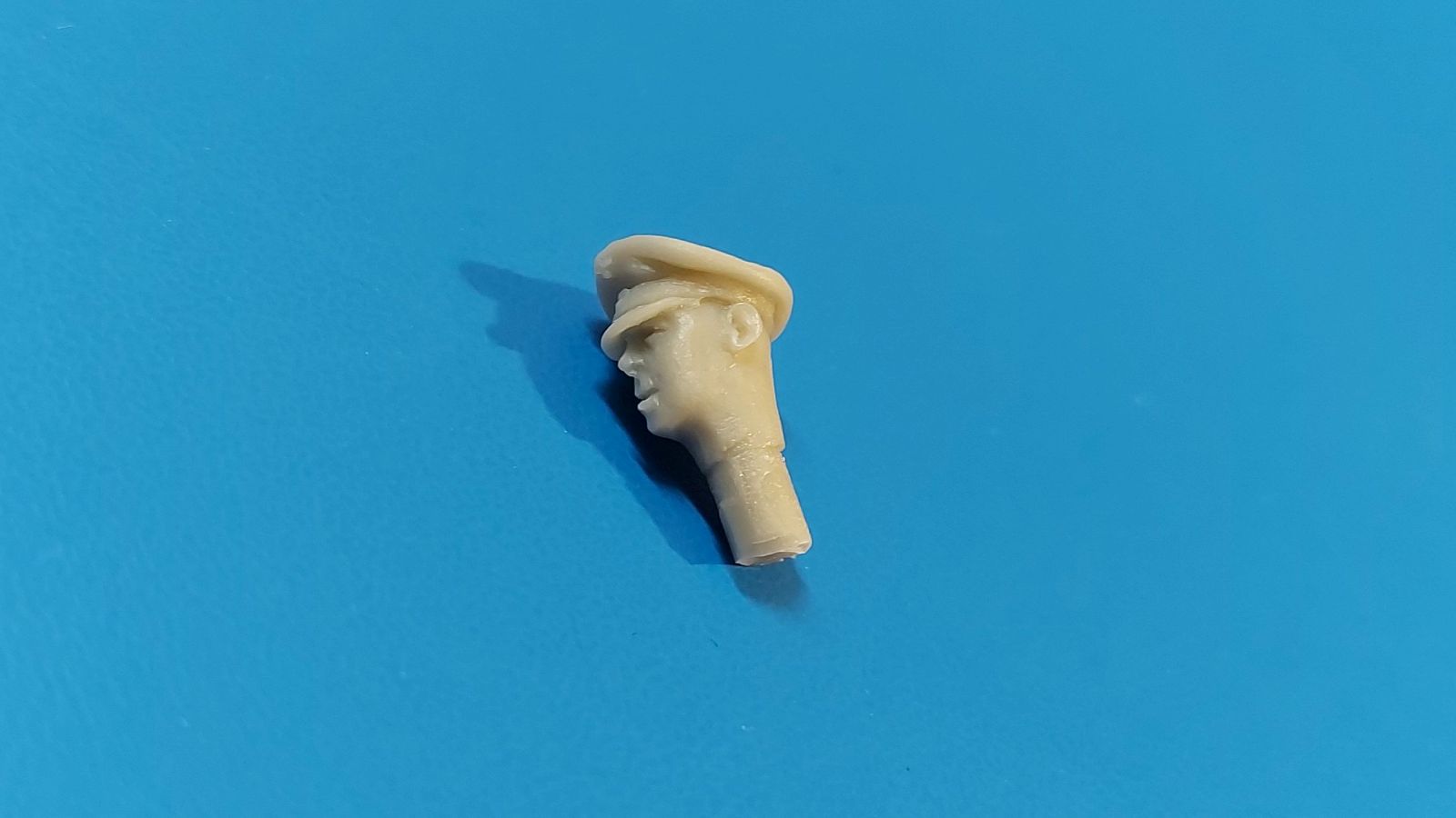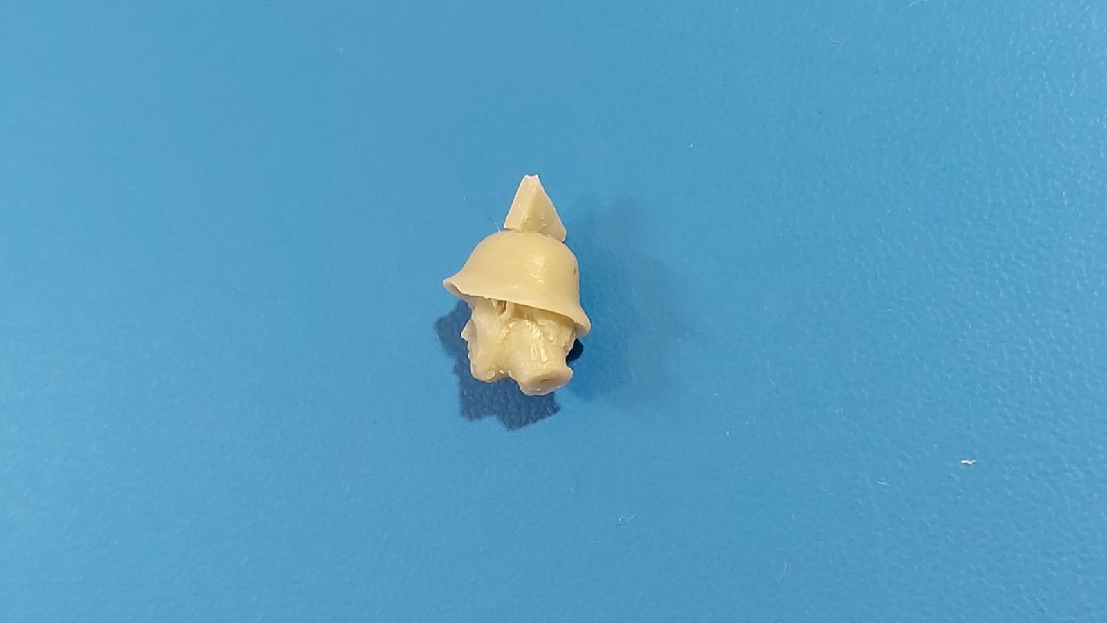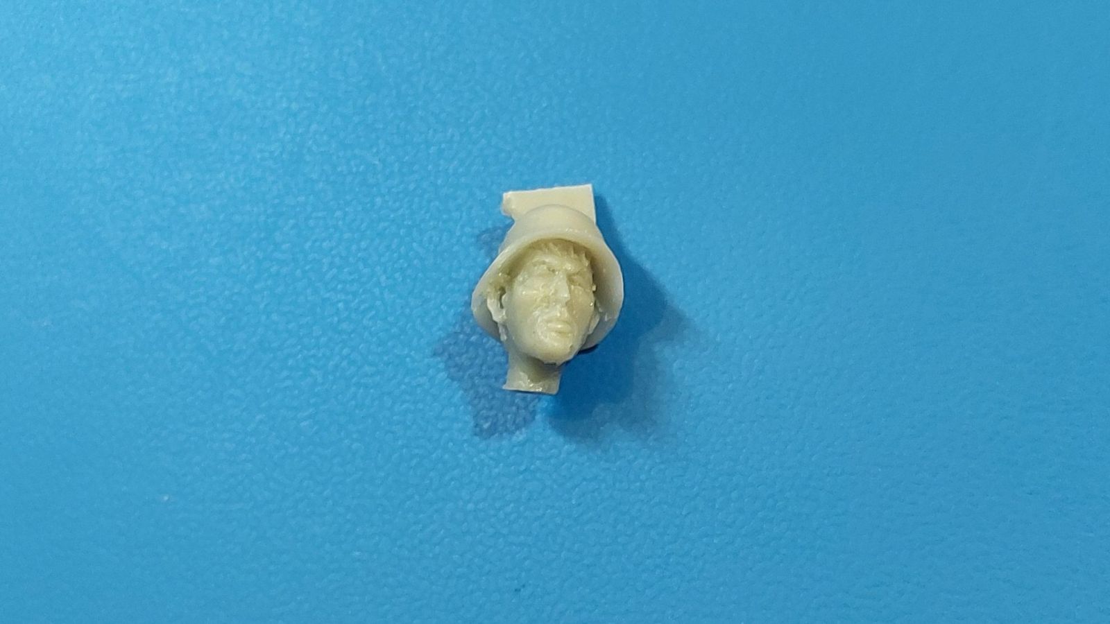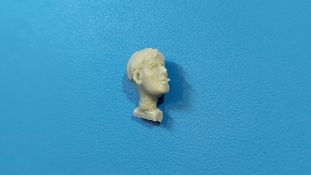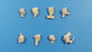 BoldDivision beschert uns hier in 1:35 ein Set mit 8 Köpfen, der Beschreibung nach für Deutsche während des 2. Weltkrieges. Bis auf 2 Ausnahmen sind die europäischen Gesichtszüge glaubhaft dargestellt. Damit kann man Figuren einen anderen Ausdruck geben oder nicht so gute Plastikköpfe ersetzen. Die Gussqualität definiert sich über die scharfen Details und ausdrucksstarke, unterschiedliche Gesichter. Schön gestaltet sind die Ohren, Augen und Münder, da hier die entsprechende Tiefe vorhanden ist. Auch die Innenhöhlung der Helme ist gut wiedergegeben. Die Angüsse sind unterschiedlich groß und sitzen bei allen am Hals, außer bei den beiden behelmten Köpfen. Dort sitzen sie direkt auf dem Helm und werden eine saubere Nacharbeit erfordern. Die beiden Barhäuptigen unterscheiden sich schon einmal durch die unterschiedlichen Frisuren und auch die Nasen und Wangengestaltung unterscheiden sich deutlich. Der mit dem etwas breiteren Kinn trägt außerdem einen Zigarettenstummel im Mundwinkel. Die Schirmmütze des Offiziers hat einen schönen Faltenwurf, Mützenband und Reichsadler sind gut zu erkennen. Das Gesicht ist etwas ausdruckslos, Nacken und Hals gehen übergangslos ineinander über. Ohren, Nase und Augenpartie sind gut gestaltet, aber leider hat er eine Blase an der Unterlippe. Der Anguss geht über den vollen Halsdurchmesser, so dass man etwas mehr zu säbeln hat. Der Kopf mit dem Käppi hat ein recht schmales Gesicht und gibt ohne Bemalung einen etwas verhärmten Gesichtsausdruck wieder. Der Mund ist leicht geöffnet, als ob er etwas ruft oder sagt. Auch hier „tolle“ Ohren, Frisur gut wiedergegeben. Der Anguss am Hals ist groß, aber besser zu greifen als bei dem Offizier. Den Kameraden mit dem Schiffchen kann man sich gut als Panzersoldaten vorstellen. Individuelles Gesicht, Hals und Nackenpartie glaubwürdig und ein kleiner, sicherlich leichter zu entfernender Anguss am Hals sind die Merkmale dieses Kopfes. Der erste behelmte Kopf gefällt grad durch den Helm, der sehr schön seine Innentiefe zeigt. An Stirn und Nacken sieht man die unter dem Helm hervorragenden Haare. Es gibt keinen Kinnriemen, den man ggfs. selbst anfertigen muss. Das rechte Auge (von vorn gesehen das Linke) ist etwas geschwollen und die kleine Blase links am Kinn erfordert etwas Spachtelmasse. Dennoch ist das Gesicht noch akzeptabel. Der Anguss sitz auf dem Helm direkt, aber damit sollte man umgehen können. Den letzten beiden kann ich die europäischen Gesichtszüge nicht bestätigen! Das liegt aber daran, dass beide eine Gasmaske aufgesetzt haben. Der mit Helm trägt eine Gasmaske mit seitlich versetztem Filter. Die Sichtscheiben sind leider ohne erkennbaren Rand, aber das Nackenband ist vorhanden. Ohren, Haaransatz sind ok, der Helm wieder mit gut dargestellter Unterhöhlung. Dieser Kopf hat 2 Angüsse, einen am Helm, einen am Filter. Der andere trägt eine Schirmmütze. Haaransatz und Ohren sind gut zu erkennen. Die Maske zeigt den typischen Faltenwurf, der Nackenriemen ist sauber herausgestellt. Ich hätte mir gewünscht, dass die Ränder der runden Sichtscheiben zu sehen wären. Eine schöne Auswahl, um Figuren etwas aufzupeppen oder ihnen gar einen anderen Ausdruck zu verleihen. Im deutschen Handel finden wir dieses Set zwischen 8 und 9 Euro.