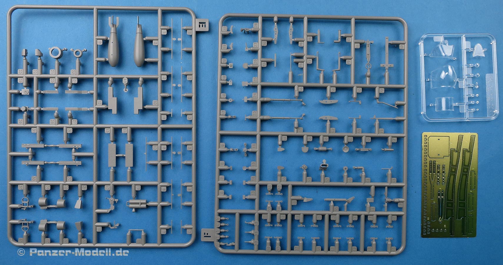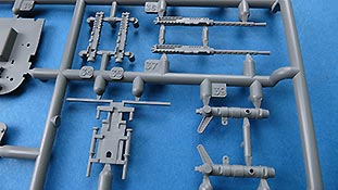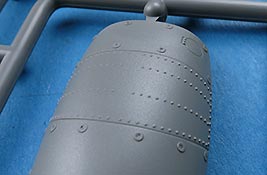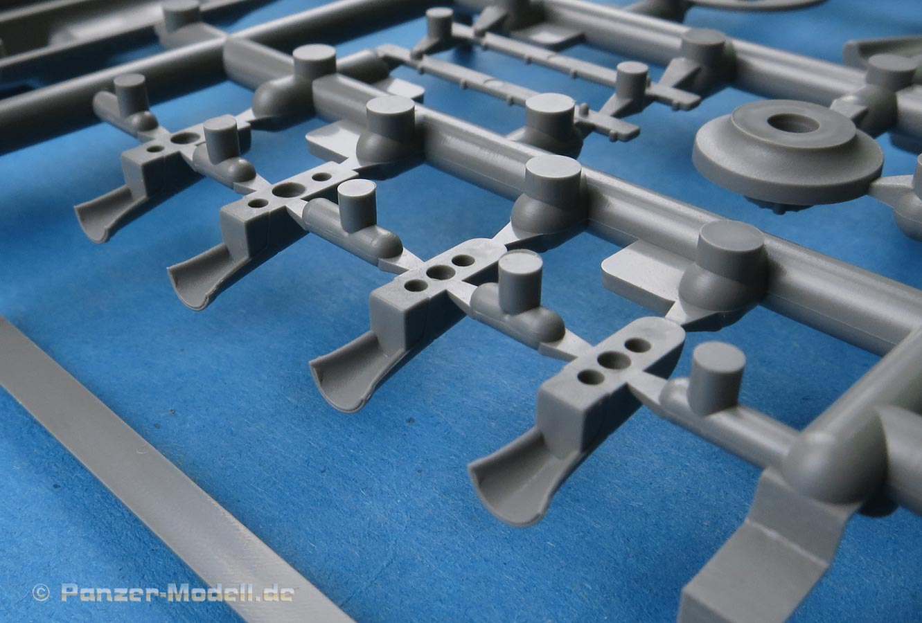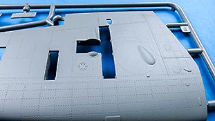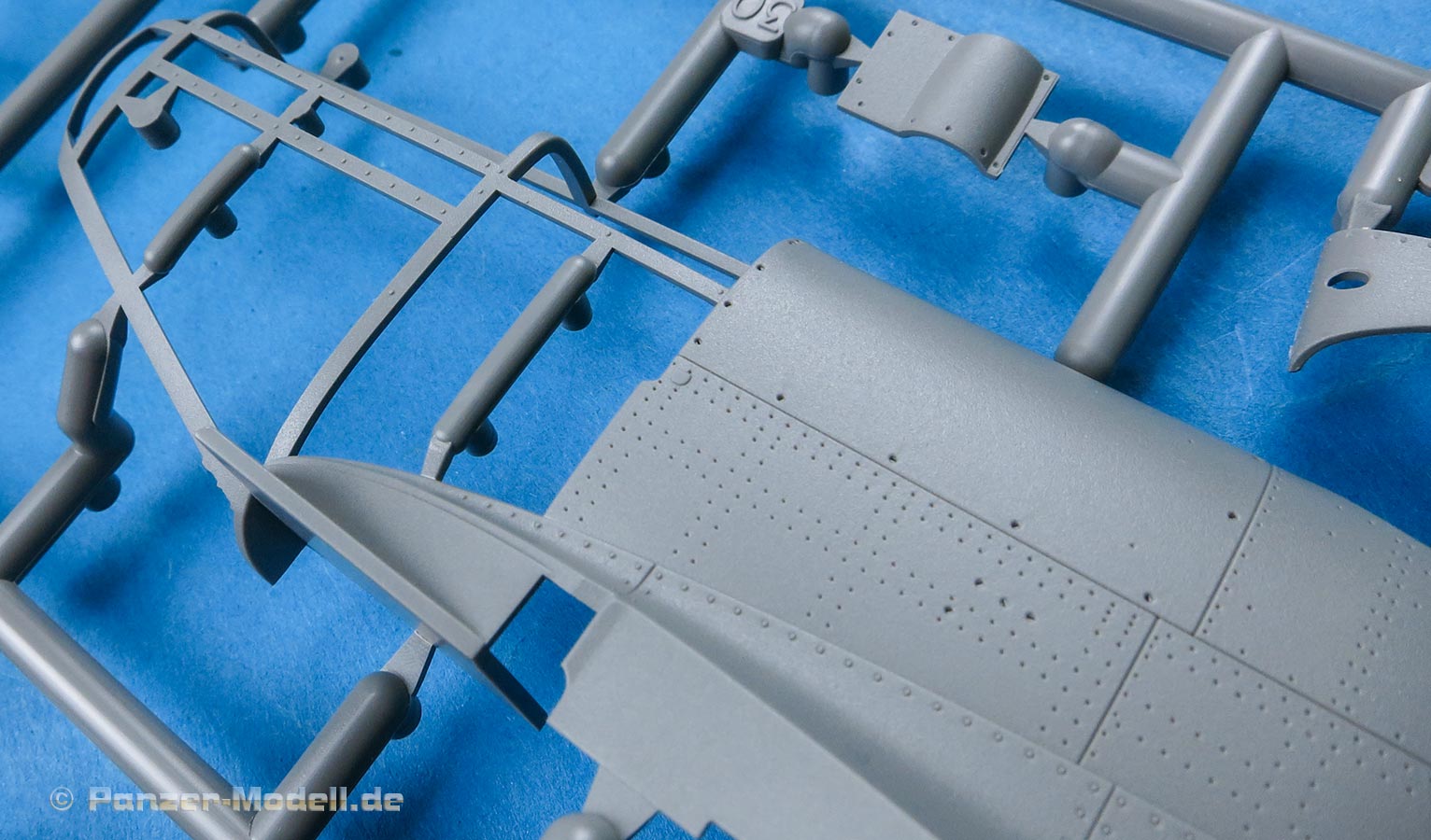 Die Teile machen auf den ersten Blick einen hervorragenden Eindruck und zeigen Spritzguß auf höchstem Niveau mit einer reichhaltigen Detailfülle. Die Zelle und die Tragflächen sind mit einer Unzahl an Nieten etc. versehen, die schön scharf und sauber dargestellt sind.