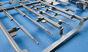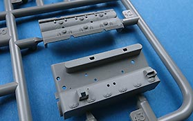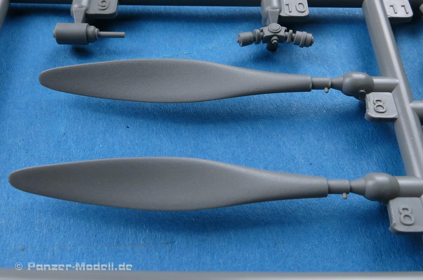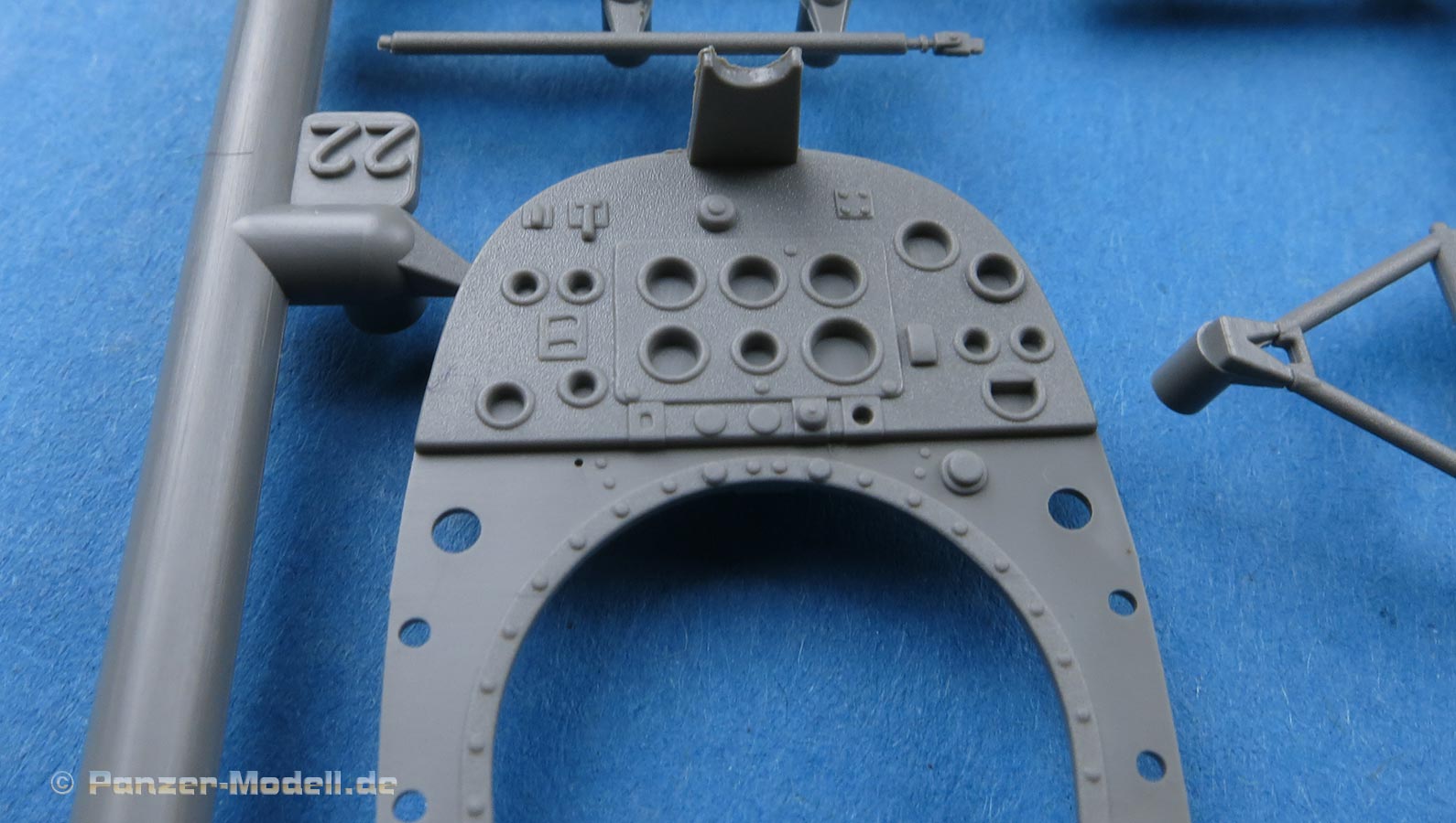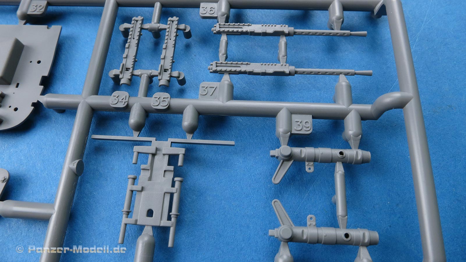 Die Teile machen auf den ersten Blick einen hervorragenden Eindruck und zeigen Spritzguß auf höchstem Niveau mit einer reichhaltigen Detailfülle. Die Zelle und die Tragflächen sind mit einer Unzahl an Nieten etc. versehen, die schön scharf und sauber dargestellt sind.