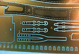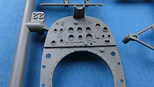 Auch das Cockpit kann sich sehen lassen - Die Innenflächen weisen bereits gut strukturierte Innenflächen auf und die Einbauteile wie Pilotensitz, Armaturen und Konsolen sind alle sehr schln und sauber gespritzt dargestellt. Auch die Gurte für den Piloten sind als Ätzteile vorhanden. Für die Rundinstrumente liegen entsprechende Decals bei.