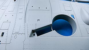 Erfreulicherweise sind die Wartungsklappen auf der Oberseite der Flügel einzeln beigelegt, sodass man diese auf Wunsch auch offen darstellen kann und einen Blick auf die Waffen bekommen kann.