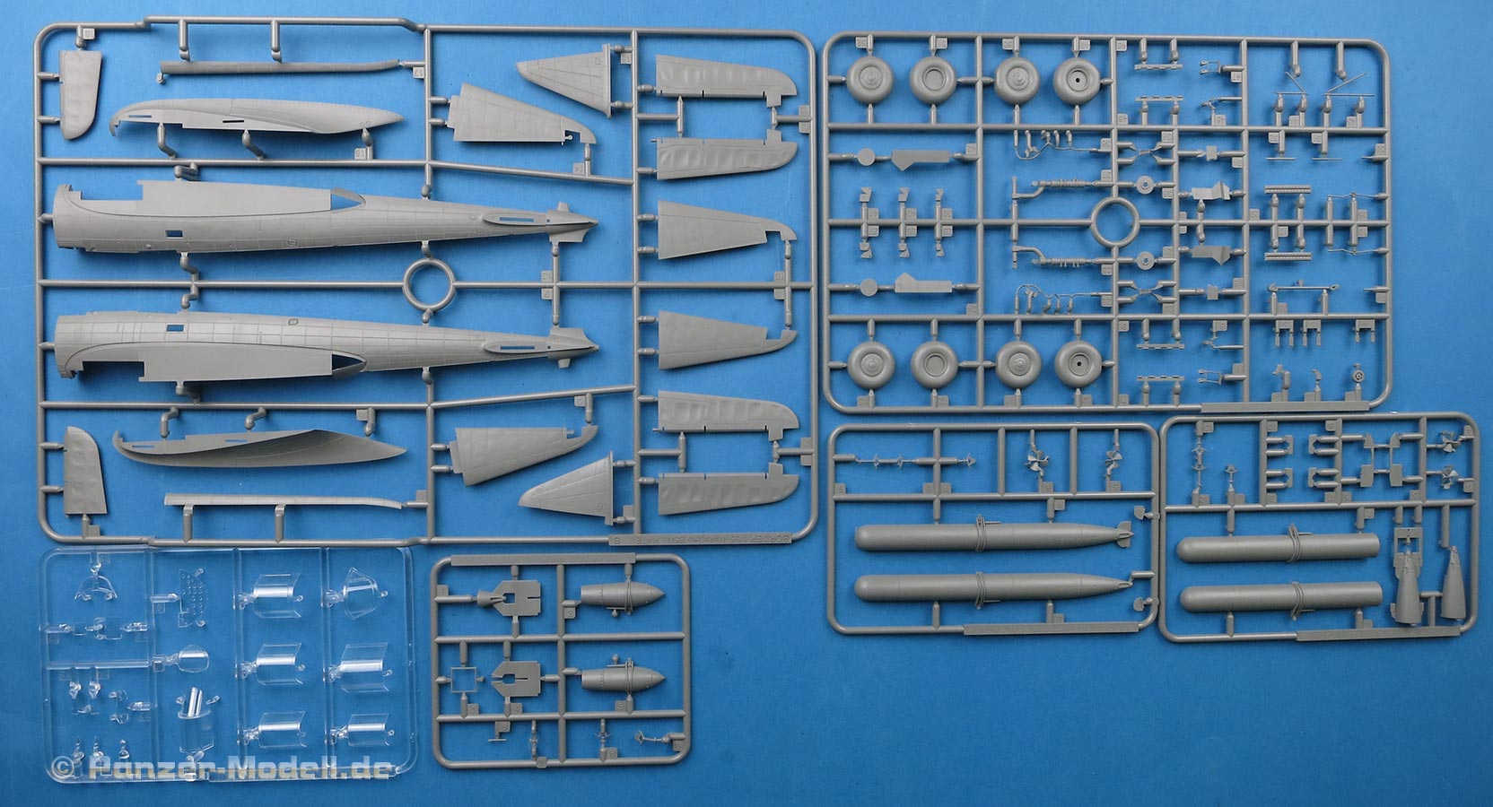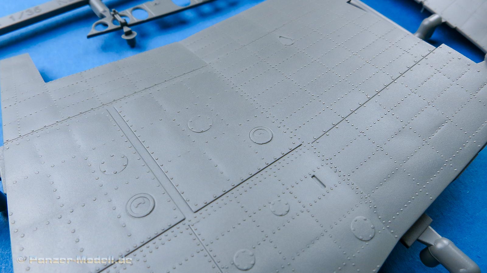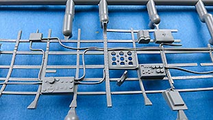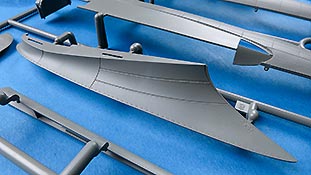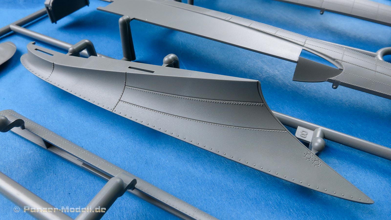 Die Teile machen auf den ersten Blick einen hervorragenden Eindruck und zeigen Spritzguß auf höchstem Niveau mit einer reichhaltigen Detailfülle. Die Zelle und die Tragflächen sind mit einer Unzahl an Nieten etc. versehen.
