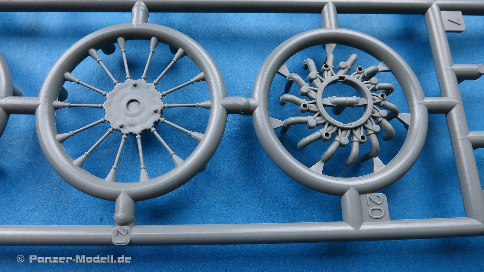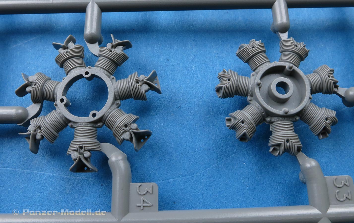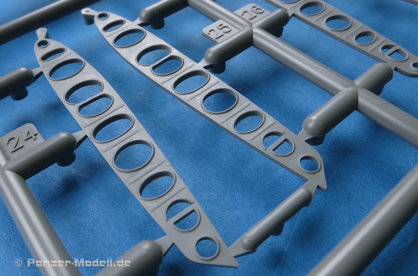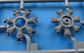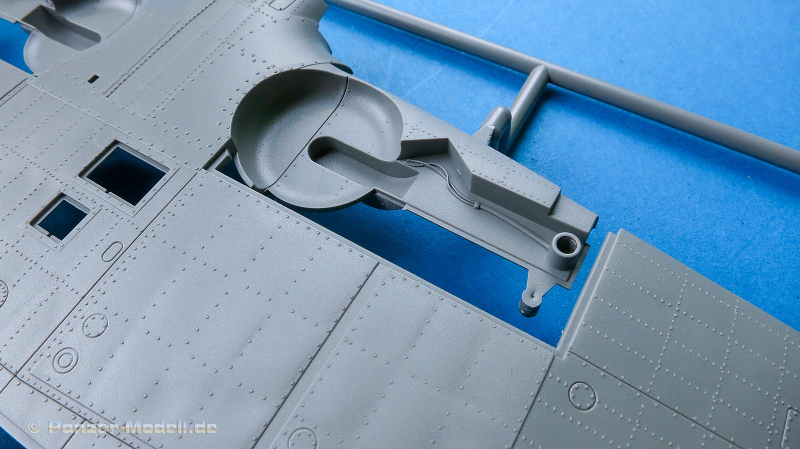 Die Teile machen auf den ersten Blick einen hervorragenden Eindruck und zeigen Spritzguß auf höchstem Niveau mit einer reichhaltigen Detailfülle. Die Zelle und die Tragflächen sind mit einer Unzahl an Nieten etc. versehen.