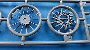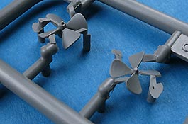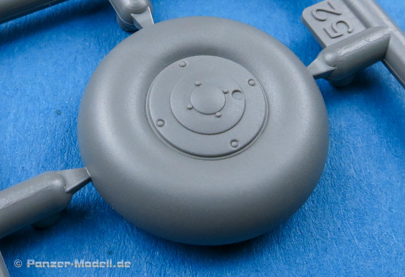 Der verkleidete Motor wird in einem Stück vorn an den Rumpf angesetzt, die Luftschraube ist einteilig und schön gemacht und das Fahrwerkt ist im eingefahrenen oder ausgefahrenen Zustand anbaubar. Und erfeulicherweise hat Border dabei daran gedacht die Reifen in zwei Versionen beizulegen - belastet und unbelastet. Sehr vorbildlich.