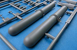 Zusätzlich hat Border dem Bausatz 2 Torpedos und eine Bombe spendiert, die sich aus mehreren Teilen zusammensetzen und wirklich schön detailiert sind.