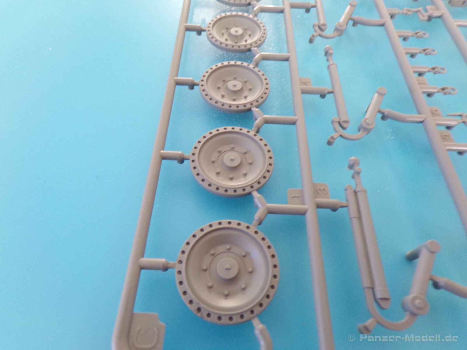 Dies gilt auch für die Kanone. Denn laut Bauanleitung soll die kleine Mündungsbremse für die Version mit den kurzen Seitenschürzen sein, da diese aber nicht aufgeführt wird, hilft wieder einmal nur eigenen Recherche ein kleiner Minuspunkt.
