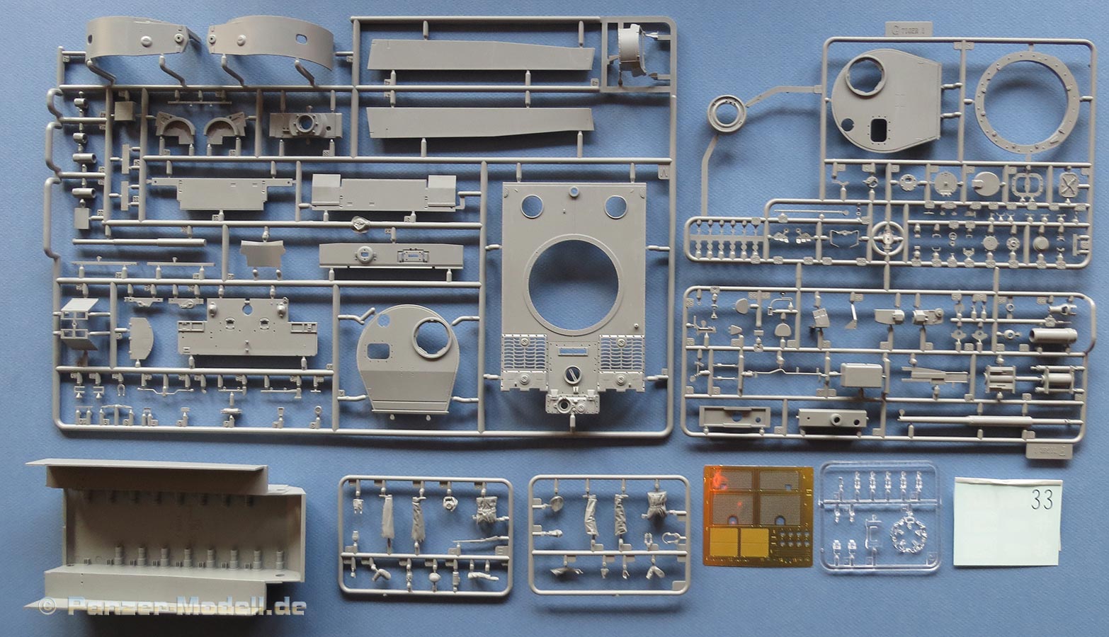 Die Turmstaukisten liegen in den besonderen, frühen Versionen bei, die für diese ganz frühen Tiger gültig sind, sie sticht natürlich die Version mit den beiden seitlichen Kästen der Turmnummer 100 hervor.