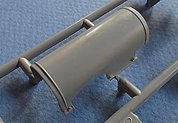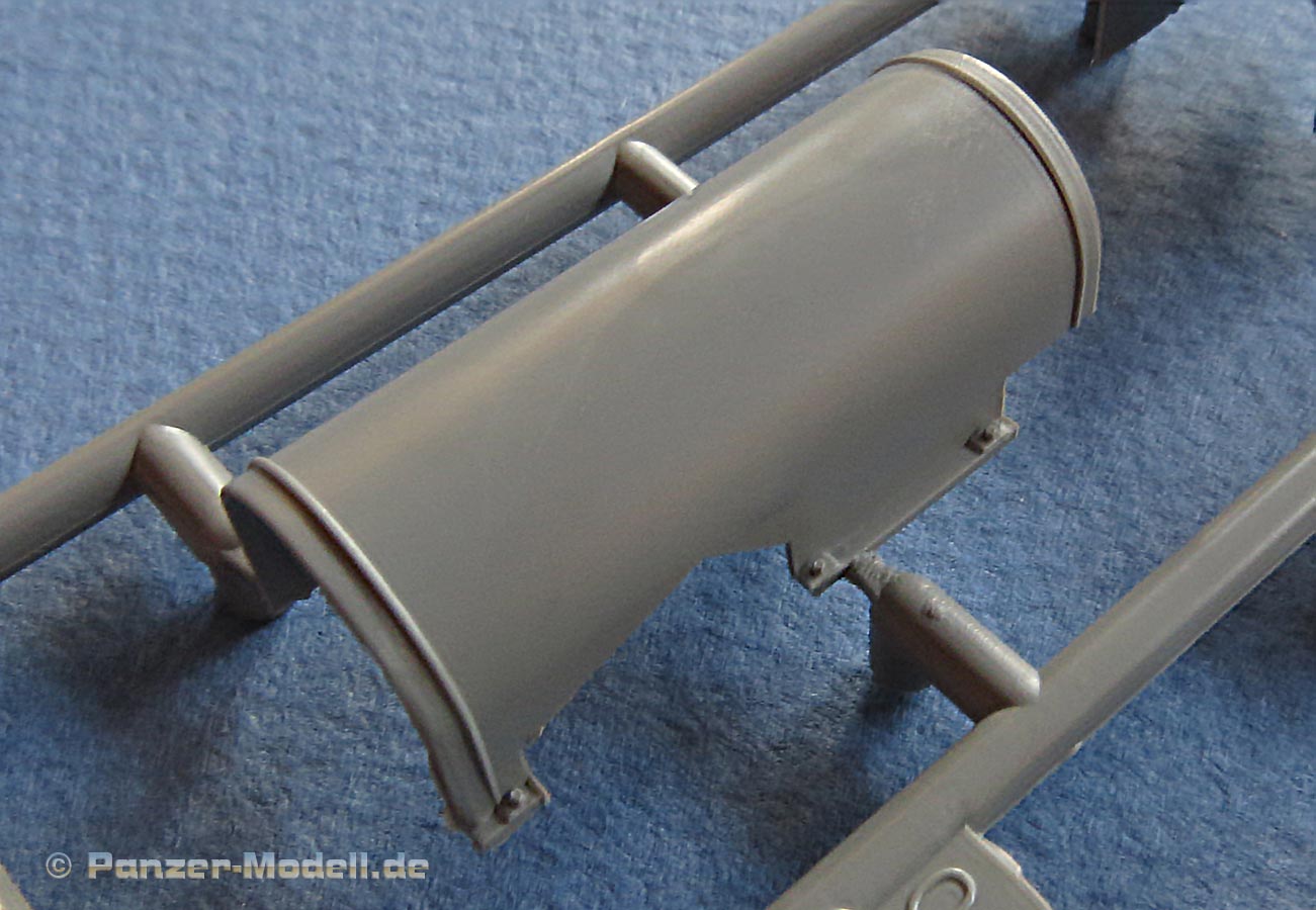 Die Nebelwurfbecher am Turm liegen als Plastuikteile bei, die sauber und fein detailliert sind.