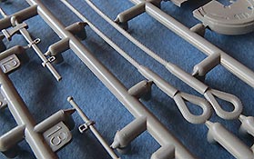 Die Teile an den Spritzlingen sehen wie gewohnt gut und fein detailliert gespritzt aus - kein Verzug, keine Sinkstellen oder Fischhäute. Auswerferstellen eigentlich nur da wo man sie später nicht mehr sieht, also so, wie man es mittlerweile von Border gewohnt ist.