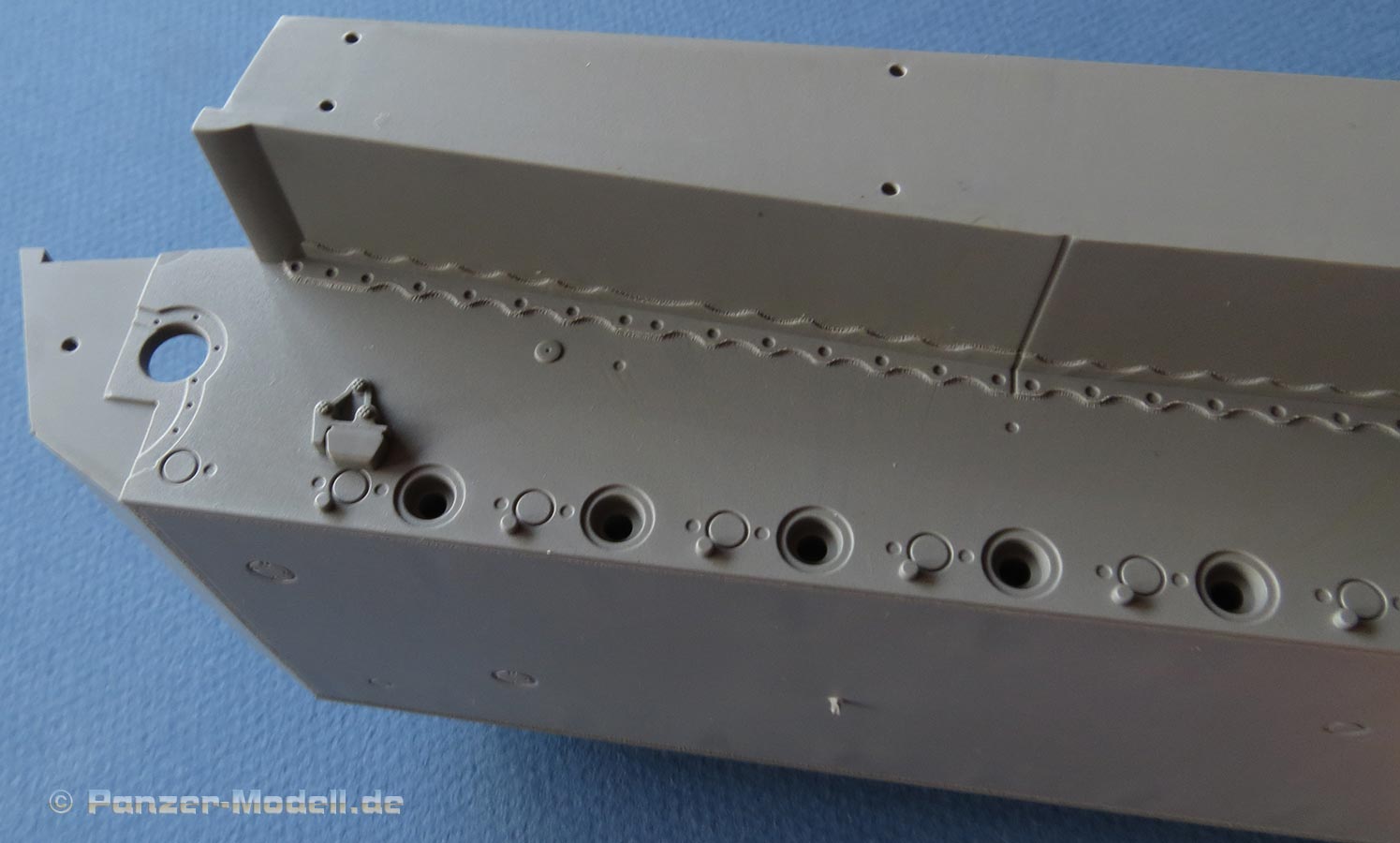 Border hat sogar den Tiefwatschnorchel beigelegt, der wahlweise auf dem vorgesehenen Anschluss auf dem Motordeck angebaut werden kann. Die Seitenwände der Oberwanne sind korrekterweise glatt ohne Aufhängungen für Material oder die Schürzen, was ein markantes optisches Merkmal dieser ganz frühen Tiger ist.