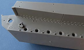 Die Abschleppseile werden aus den Kauschen und dem beiliegenden Stahlseil zusammengebaut und auf der Oberwanne in die Halterungen eingelegt. Das Stahlseil empfinde ich als etwas störrisch, hier hätte ich mir ein schönes Kupferseil gewünscht, das sich besser in Form bringen lässt.