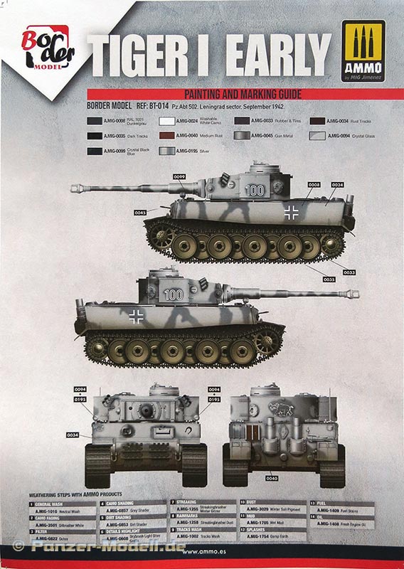 Der Bausatz mit der Nummer BT-014 ist der Tiger I initial production und erweitert damit die Serie an Tigern aus dem Programm von Border Model und in diesem Fall mit der Möglichkeit einen der allerersten Tiger zu bauen, die noch einige besondere Merkmale aufwiesen.