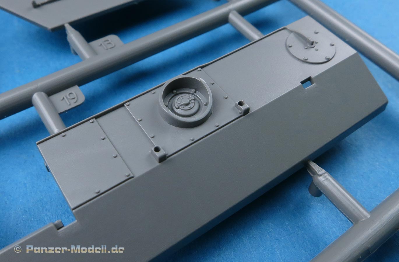 Die obligatorischen MGs auf dem Turmdach sind in Spritzguss gemacht und sehen richtig fein aus.