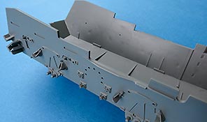 Die Unterwanne ist einteilig, was den Bau vereinfacht, gerade was auch den Einbau der Inneneinrichtung angeht. Auf den Außenseiten sind schon diverse Details angegossen und die werden durch den Anbau des Laufwerks vervollständigt.