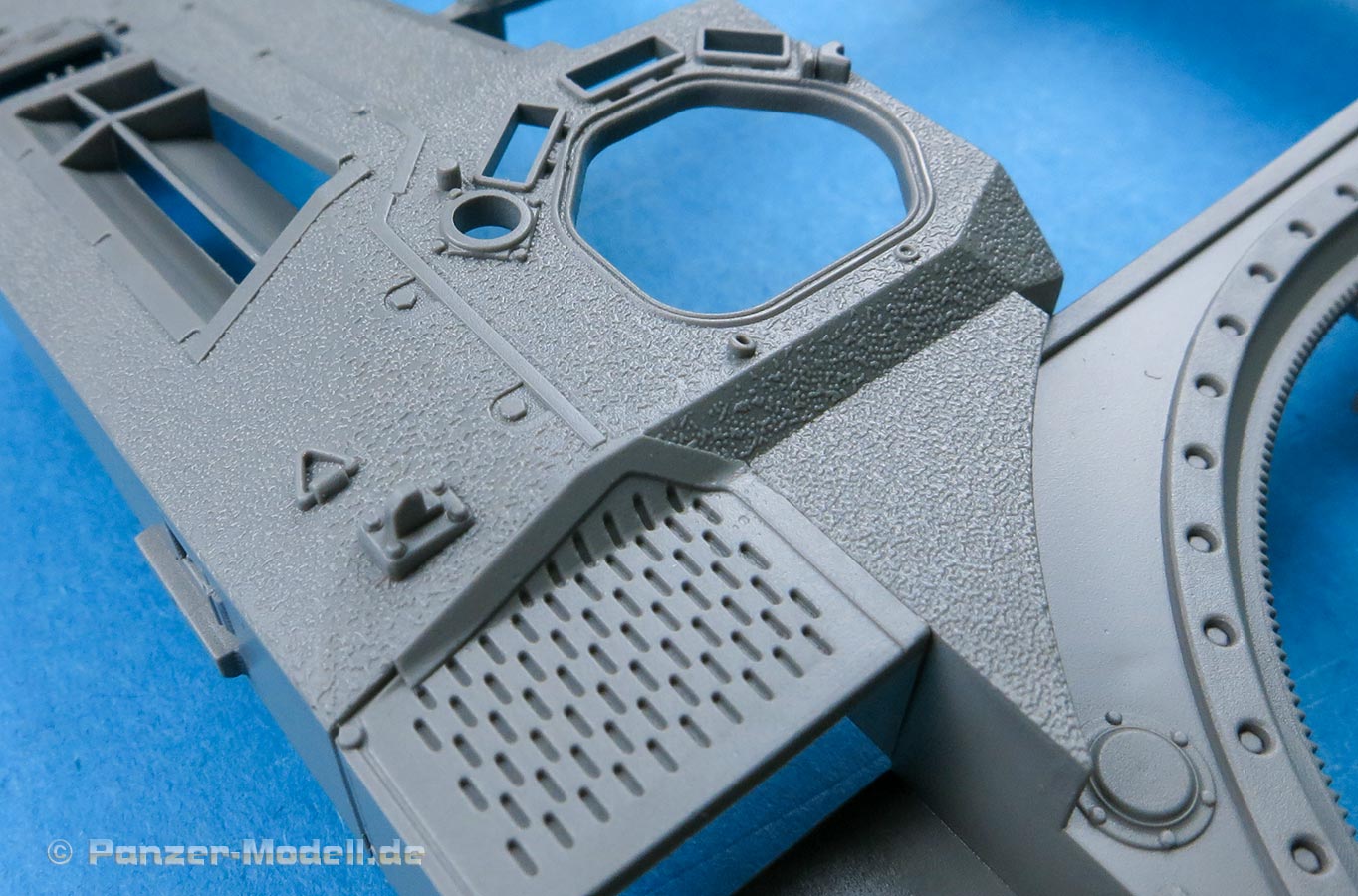 Das Turmoberteil weist ebenfalls hervorragende Struktur der Antirutschbeschichtung und weitere tolle angegossene Details. Auch hier lassen sich alle Luken offen oder geschlossen anbauen.
