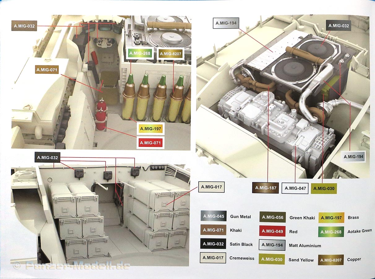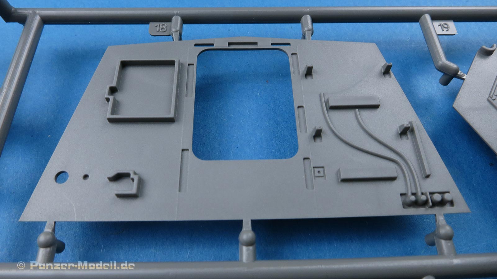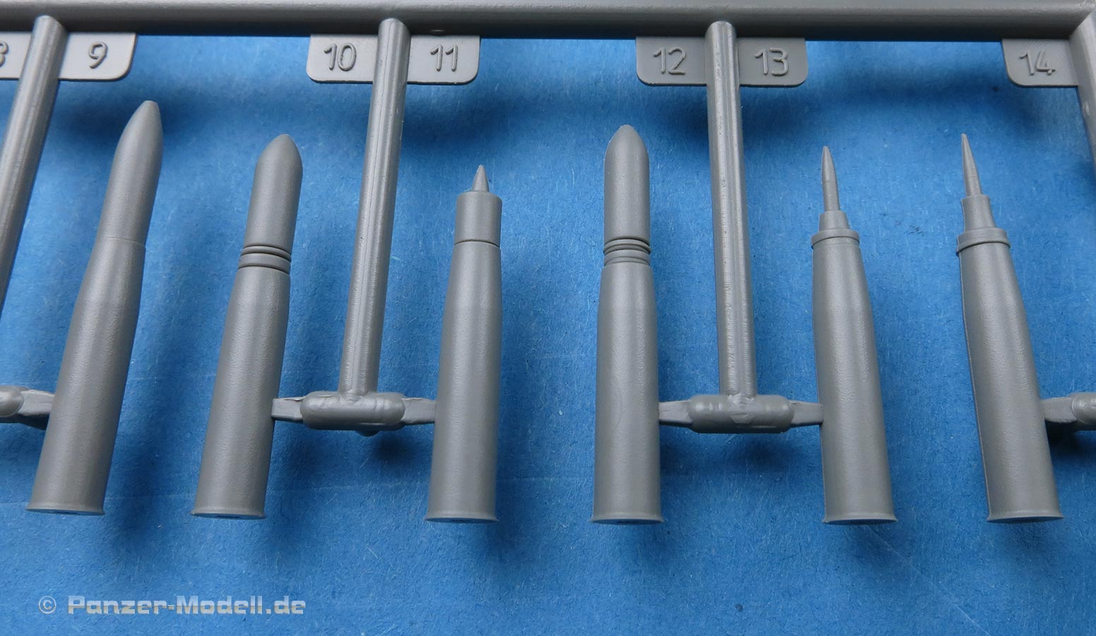 Im Kampfraum haben wir tollen Munitionslagerung/halterungen mit auch entsprechend enthaltener 105mm Munition. Insgesamt hat Border hier 6 verschiedene Munitionstypen an den Spritzlingen zu finden.
