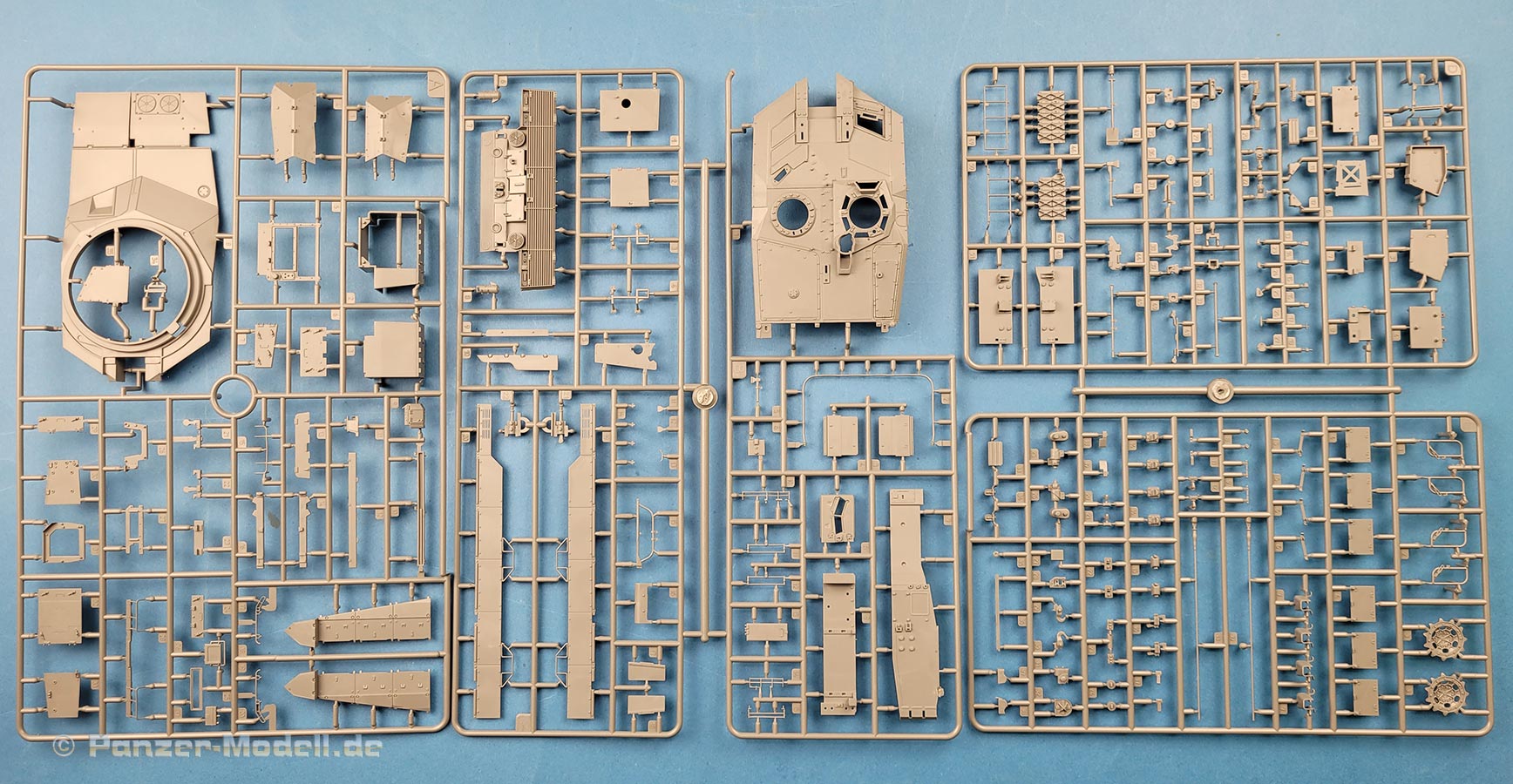 Bei Durchsicht der Teile sieht man schon, dass Border Model basierend auf dem bereits hervorragenden Leopard 2 A5 die gute Qualität konsequent weiterführt und gefühlt stellenweise noch verbessert. Sauberer Guss, exzellente Oberflächendetails, die fein und scharf sind und kein Formversatz, übermäßige Grate oder Auswerferstellen an sichtbaren Bereichen.