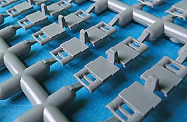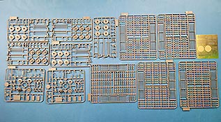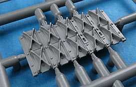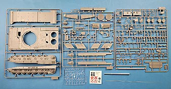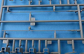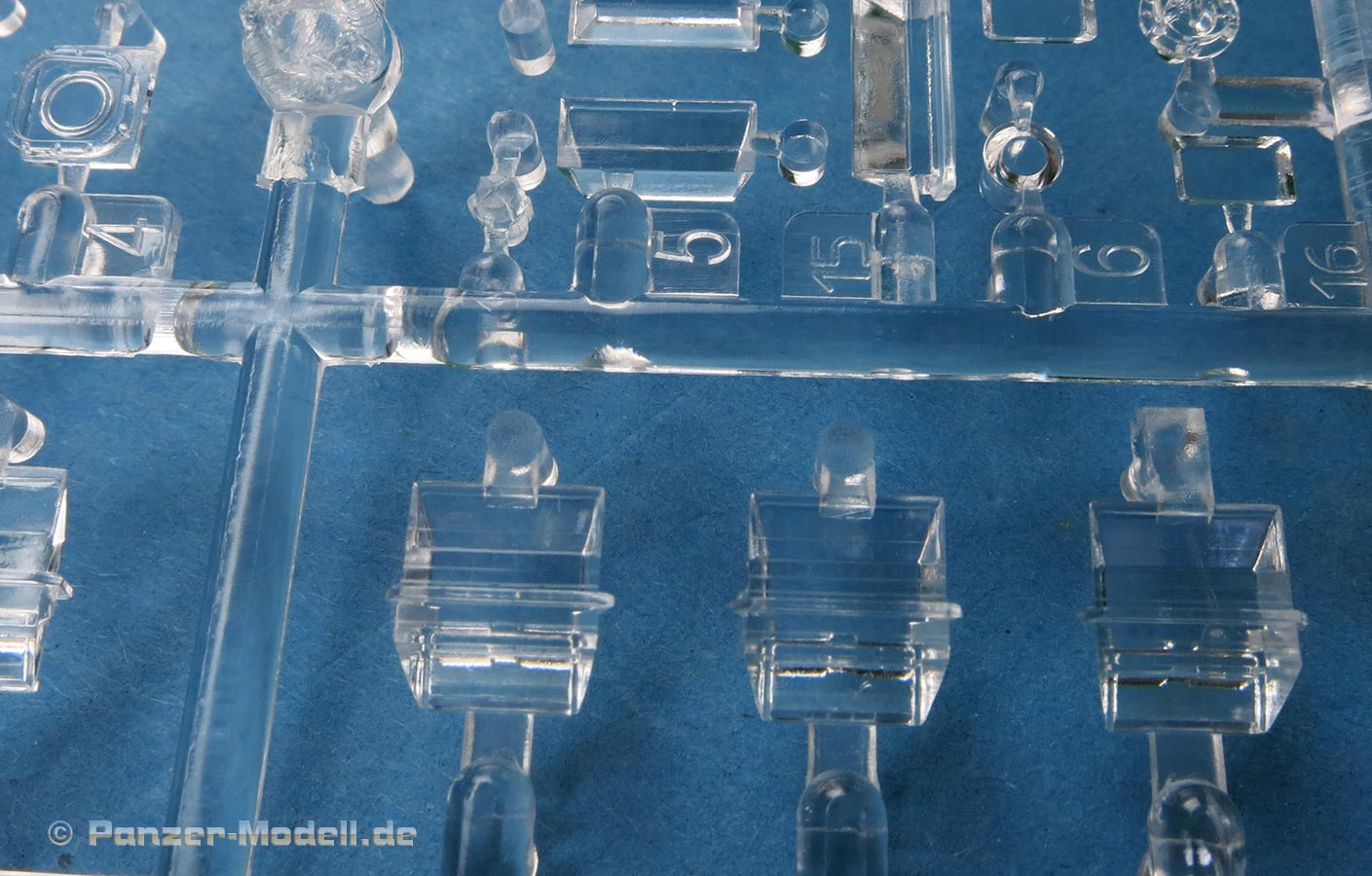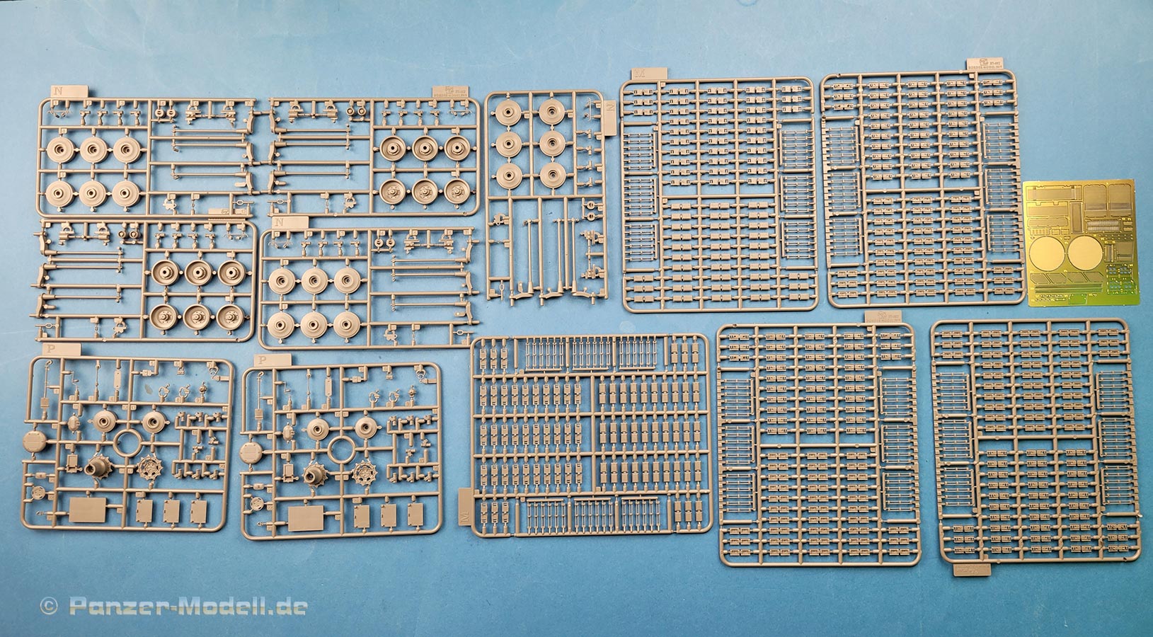 18 graue Spritzlinge, einen transparenten Spritzling, Polycaps , eine Ätzteilplatine, ein Alurohr (höchstwahrscheinlich nur in der 1. Auflage des Bausatzes), ein Stahlseil und ein Decalbogen für die Markierung einer Version.