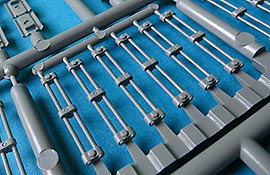 Die Schwingarme sind mit den Drehstäben in einem Stück gegossen und werden beweglich eingeklebt für ein funktionierendes Drehstabfederlaufwerk.