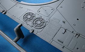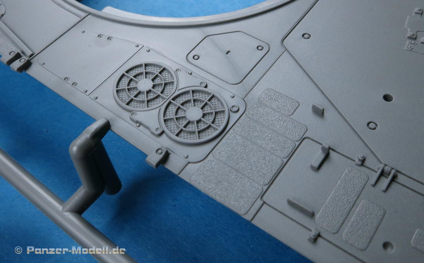 Die Ringlüfter sind fein detailliert und werden mit feinen PE Gittern versehen. Auch die Lufteinlasshutzen werden seitlich mit fein geätzten PE Gittern verfeinert.