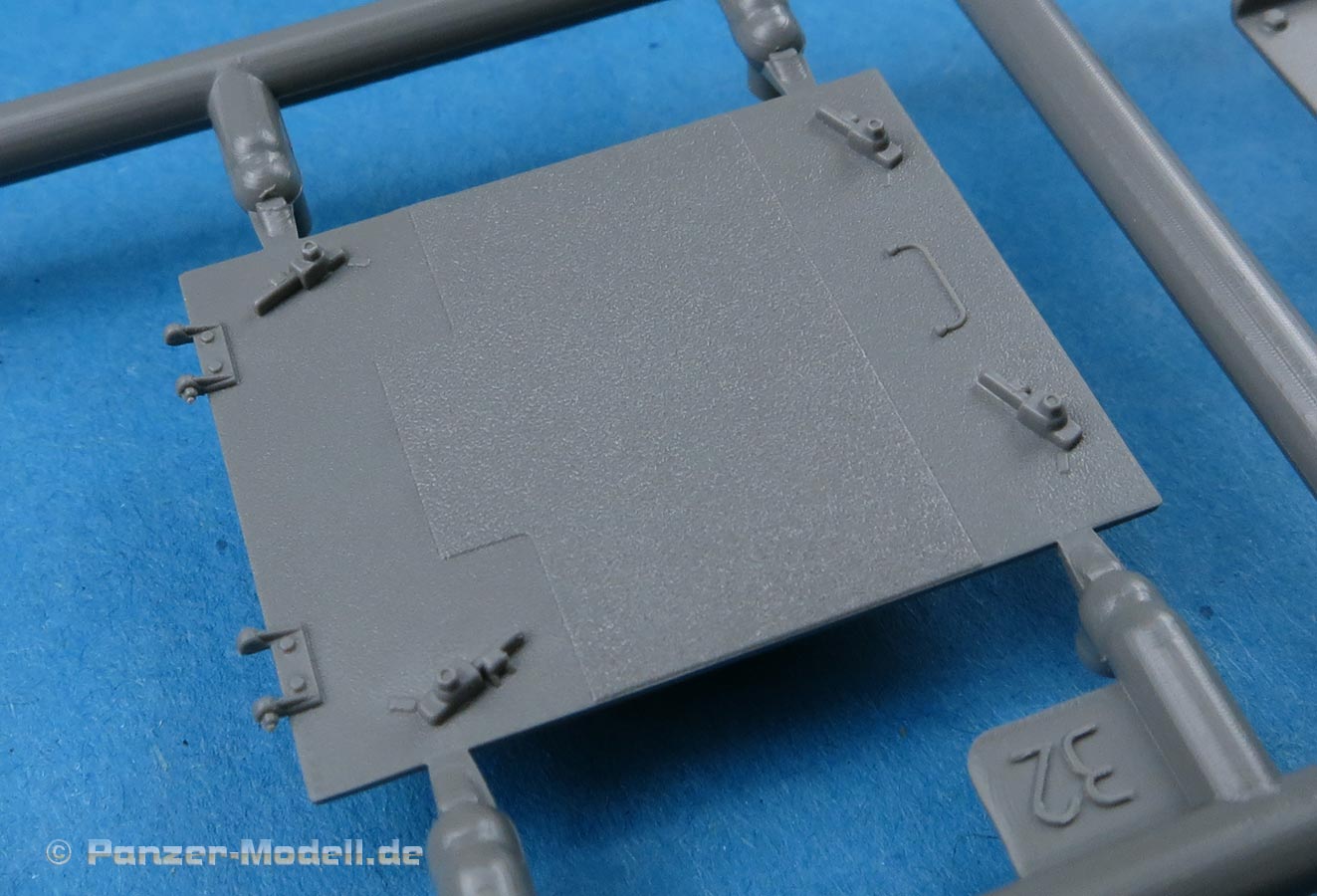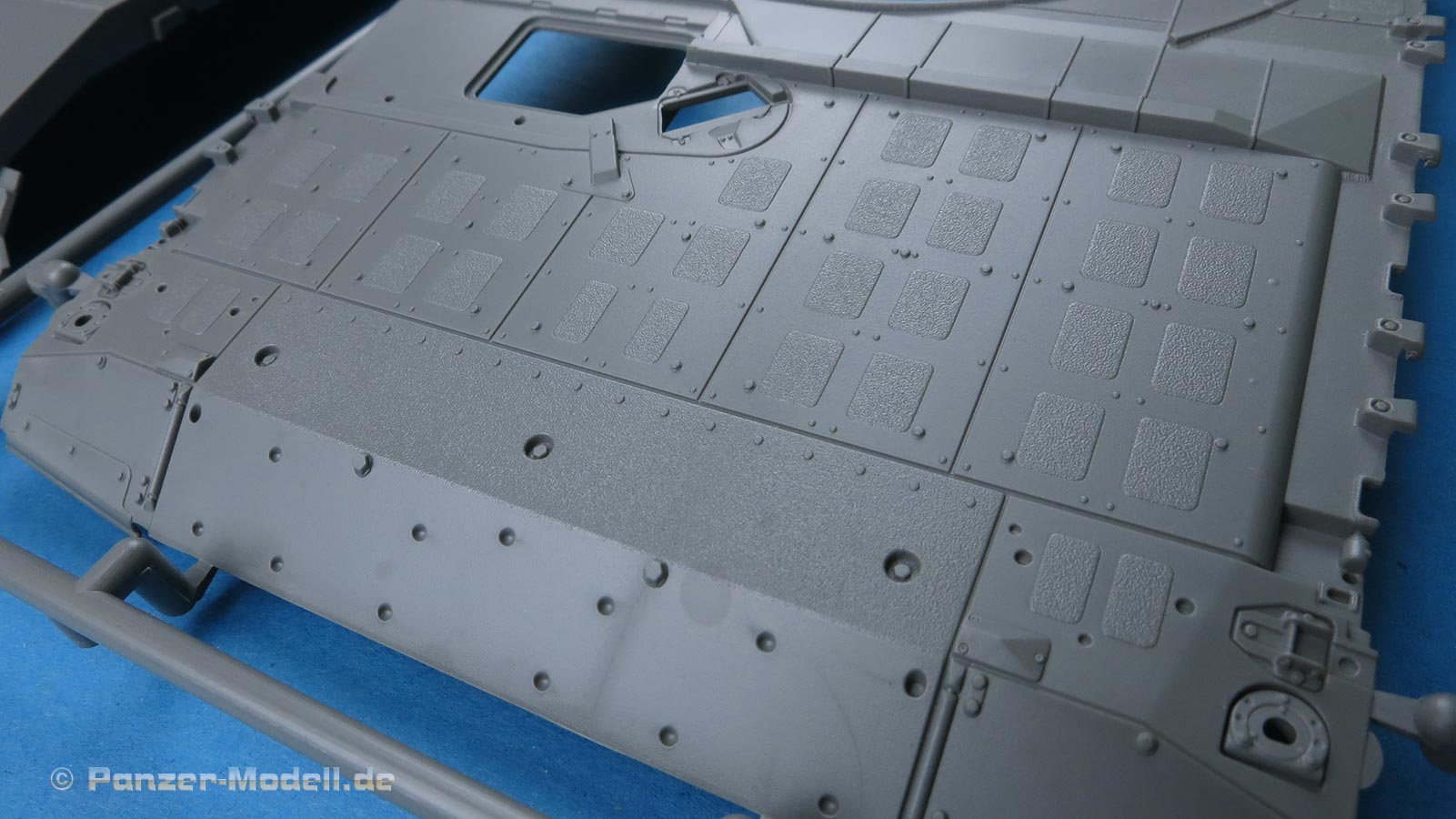 Der Turm setzt sich im Groben aus nur wenigen Teilen zusammen, die bereits tolle Details aufgeprägt haben - allem voran das wichtigste Detail: Die Antirutschbeschichtung der Turmoberseite - etwas, das oft von Herstellern vergessen oder nur unzureichend dargestellt wird. Hier wirklich aussergewöhnlich toll und realistisch fein gekörnt und scharf an den richtigen Stellen abgegrenzt gemacht. Hut ab!