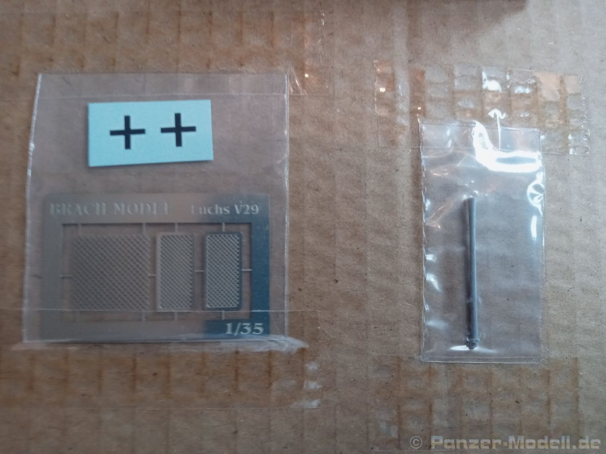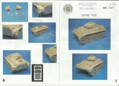 Das Original Von September 1943 bis Januar 1944 lieferte MAN insgesamt 100 Panzerkampfwagen II (PzKpfw II) Ausf L (Sd.Kfz. 123) aus, auch als „Luchs“ bekannt [1, S. 36]. Der Luchs war ein leichter Aufklärungspanzer, der seit Juli 1941 die Entwicklungsbezeichnung VK 1301 trug (VK = Versuchskonstruktion), in der Weiterentwicklung ab August 1941 die Bezeichnung VK 1303 [2, S. 18]. Allerdings geriet der Prototypenbau bei MAN in Verzug und erreichte im August 1942 nicht den gewünschten Umfang [2, S. 44]. Als Begründung wurde angegeben, dass mindestens vier weitere VK 1303 Versuchs-Fahrgestelle in der Erprobung seien, die die Fahrgestellnummern V26, V29, V30 und V31 trugen. Die Abteilung 6 des Heereswaffenamtes für Panzer- und Motorisierung (Wa Pruef 6) verfügte am 22 März 1944, dass der Luchs V29 zur Erprobung zur Kraftfahrversuchsstelle Kummersdorf zu verbringen sei. Hier standen insbesondere die Tests des luftgekühlten Tatra Dieselmotors und des Laufwerks im Mittelpunkt [2, S. 44]. Der Bausatz Auf der Suche nach „Exoten“ der PzKpfw II Reihe im Maßsstab 1/35 stieß ich auf den V29 im Webshop des italienischen Herstellers „Brach Model S.A.S.“ https://www.brachmodel.it/. Hier werden überwiegend Resin-Bausätze angeboten, die nach Bestellung innerhalb von 7 bis 10 Tagen geliefert werden. Die Website ist auch auf Deutsch verfügbar, zur Beschleunigung der Bestellung empfiehlt der Inhaber nicht den Warenkorb der Website zu nutzen, sondern ihm lieber eine E-Mail zu schreiben. Der Bausatz wird in einem Stülpkarton mit einer Bemalungsempfehlung geliefert. Die Gussblöcke bzw. Äste werden durch Styroporflocken vor Beschädigung geschützt, es liegen ein einzelgefertigtes Kanonenrohr sowie Fotoätzteile und Decals bei, die auf die Innenseite des Kartondeckels geklebt sind und somit auch vor Transportbeschädigung geschützt sind. Die Bauanleitung passt auf eine doppelseitige bedruckte DinA4-Seite. Die Anzahl der Bauteile liegt bei etwa 80, wenn man die Einzelgliederkette nicht mitrechnet. Die Qualität der Bauteile ist im Vergleich anderen Resin-Bausätzen sehr hoch, teilweise muss kaum nachgearbeitet werden. Der Preis liegt bei 85 Euro, was für ein Modell dieser Größe nicht unbedingt teuer ist, aber trotzdem nicht etwas, was ich mir jeden Tag kaufe. Wer allerdings auf „Exoten“ steht, dem kann ich dieses Modell ans Herz legen. Ich werde das Modell durch ein Metallrohr und Metall-MG sowie eine Sternantenne aufwerten, die das Fahrzeug wahrscheinlich gehabt hätte, wäre es je in den Einsatz gegangen. [1] Chamberlain, P., Doyle, H., Jentz, T.L.; Encyclodepia of German Tanks of World War Two, revised Edition, Arms and Armour Press, 1993, ISBN 13 9781854092144 [2] Jentz, T.L., Doyle, H.L.; Panzer Tracts No. 2-2, Panzerkampfwagen II Ausf. G, H, J, L, and M development and production from 1938 to 1943, Panzer Tracts 2007, ISBN 10 0977164381Alles in allem eine schöne Idee und zudem gut umgesetzt. Ideal für Figurenbauer!!!