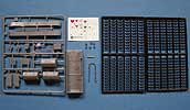 Der Karton beinhaltet einige schöne Spritzgussteile, die schon auf den ersten Blick gefälliger wirken, als das Pendant von Trumpeter. Es handelt sich um insgesamt 5 Spritzlinge von denen zwei die Einzelgliedketten beinhalten. Dazu die Wanne als Einzelteil, 6 kleine Federn, ein Metallrohr und ein schöner, kleiner Decalbogen.