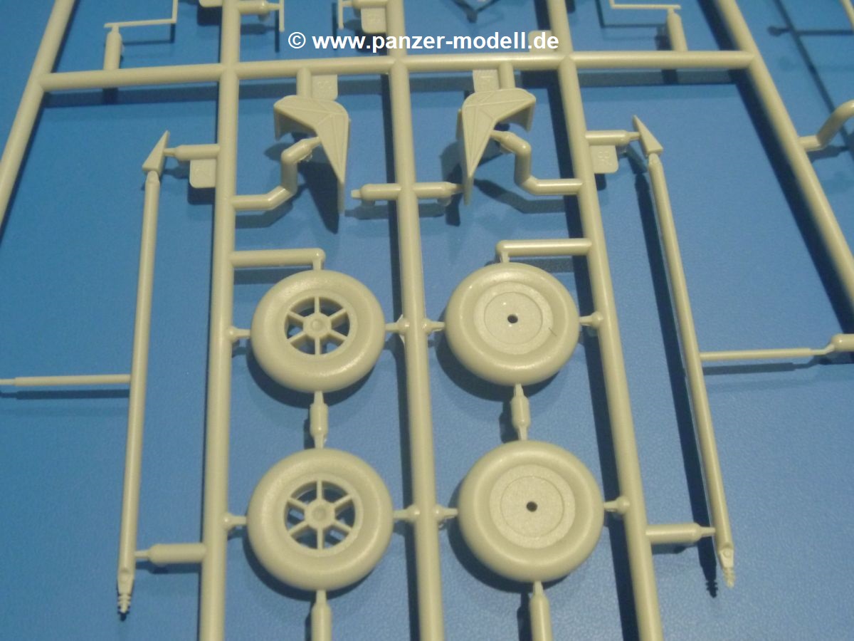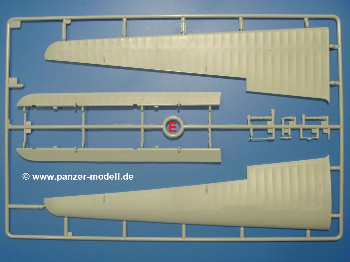 Das Original: So ab Mitte der 1930-er entwickelte die Deutsche Forschungsanstalt für Segelflug einen Lastensegler für 1 Piloten und 9 Soldaten, der ab 1939 unter der Bezeichnung DFS-230 in der Spielzeugfabrik Robert Hartwig in Serienproduktion ging. Zwischen 1939 und 1944 wurden bei Hartwig und anderen Werken über 1.600 Stück gebaut. Er war 11,24 m lang und die Spannweite betrug 20,87 m. Leer wog er 860 kg und konnte mit Zuladung ein Startgewicht bis 2.100 kg erreichen.Die erfolgreiche Feuertaufe erlebte der DFS-230 am 10. Mai 1940 bei der Eroberung des belgischen Forts Eben-Emael. Der größte Einsatz von Lastenseglern auf Kreta stellte sich wegen der großen Verluste als Desaster heraus, dennoch wurde er weiterhin in Afrika und an der Ostfront für den Nachschub eingesetzt.Einige Originalaufnahmen sind bei WikiMedia Commons zu finden.Der Bausatz: Bronco hat uns ja bereits 2 Lastersegler Bausätze des Horsa beschert. Als dann der DFS-230 angekündigt wurde, war die Freude entsprechend, aber man musste doch etwas Geduld aufbringen. Nun ist er endlich da. Werfen wir mal einen Blick in den 450 x 300 x 70 mm großen Karton: