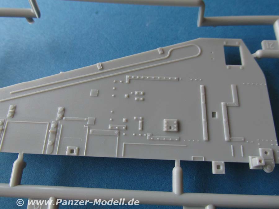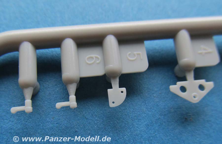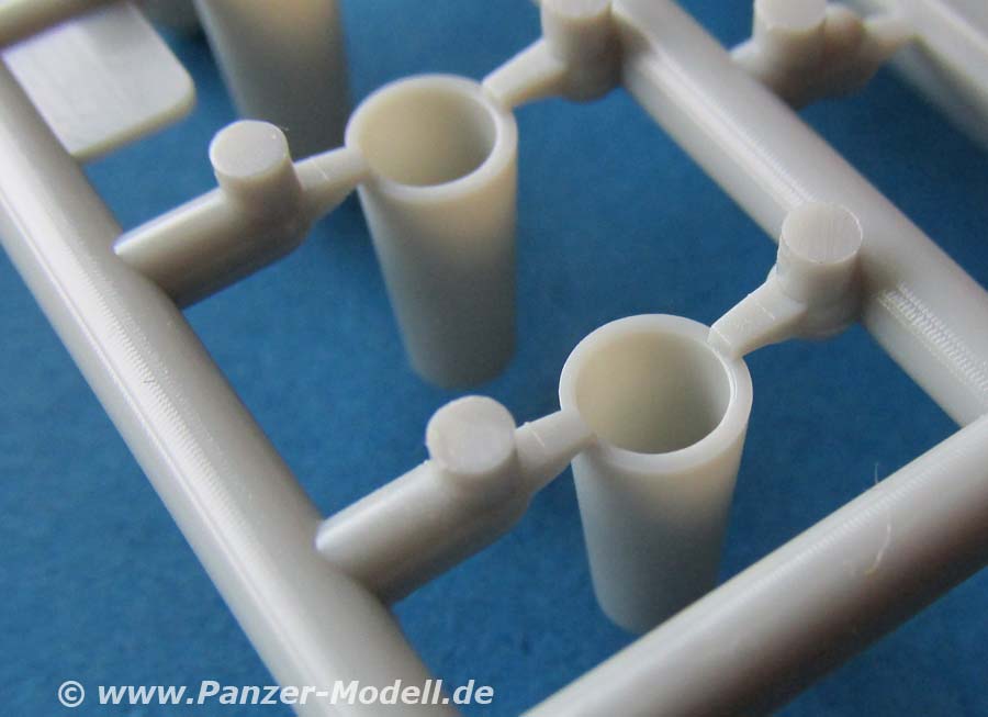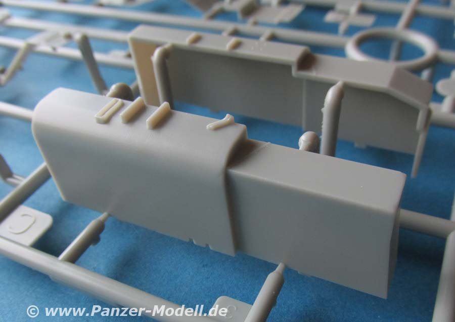 Beim Bau muss man sich bei einigen Anbauteilen entscheiden ob man das Modell in Feuer- oder Transportstellung baut.