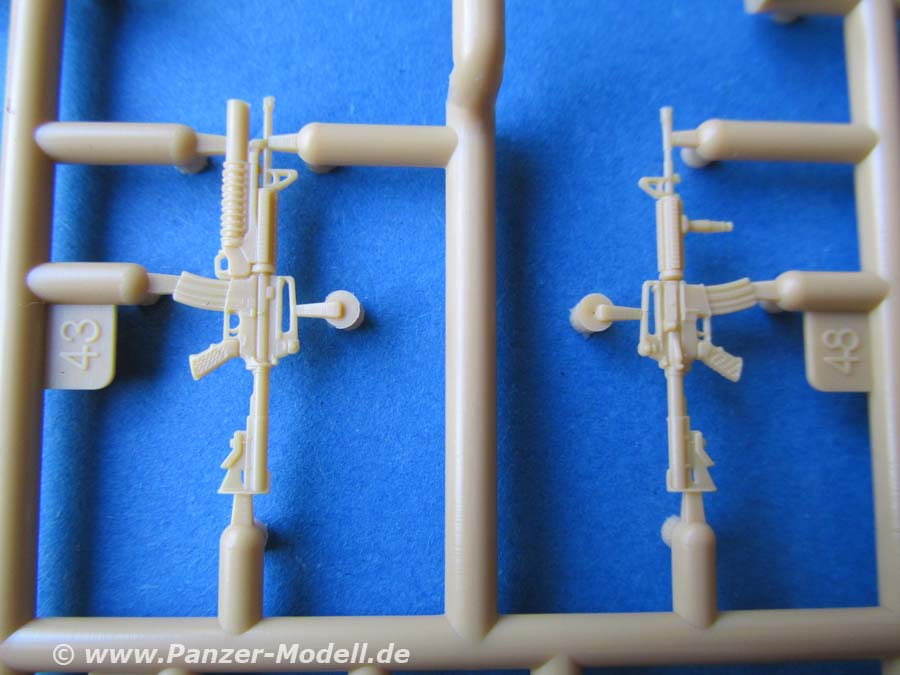 Als Special Bonus für diesen Bausatz hat Bronco noch euine zusaätzliche Waffenstation beigelegt, die man wahlweise auf der mittleren, linken Luke montieren kann. Dazu gibt es an den Spritzlingen noch diverse Handwaffen für die besatzung, die wirklich gut gemacht sind.