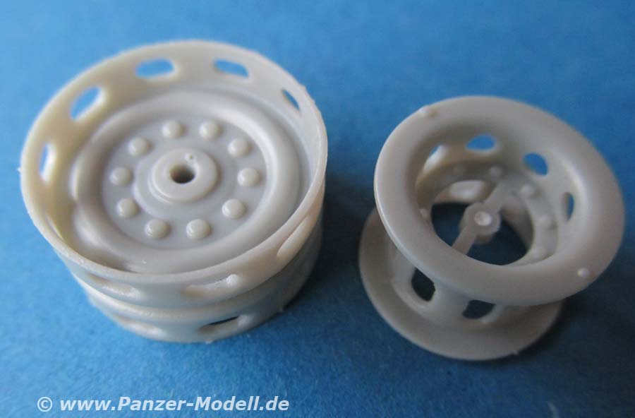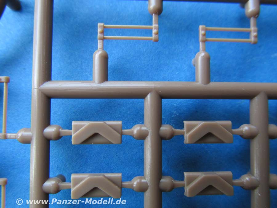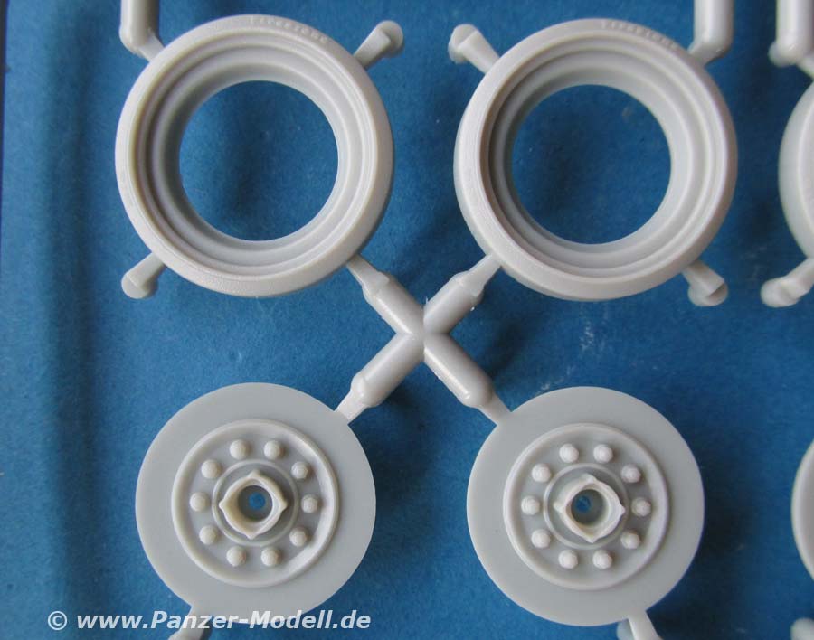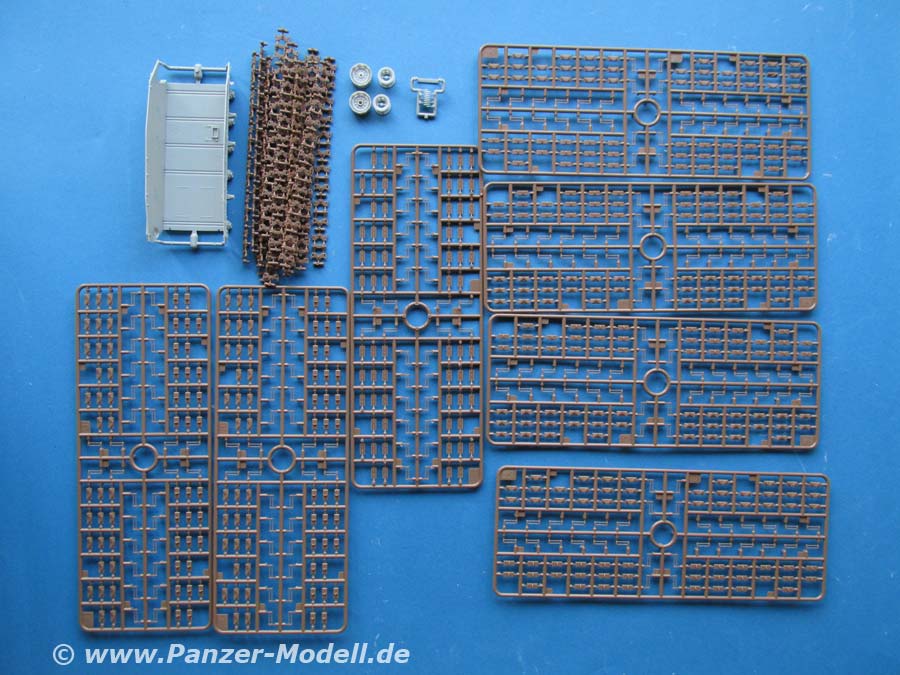 Die Ketten sind als Einzelgliedketten ausgeführt mit sehr guten Details. Der Clou ist dass Bronco hier sowohl den frühen als auch den späten Kettentyp beigelegt hat. Damit hat man ein vollkommen funktionierendes Laufwerk mit beweglicher Federung und beweglicher Kette!