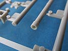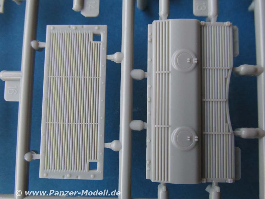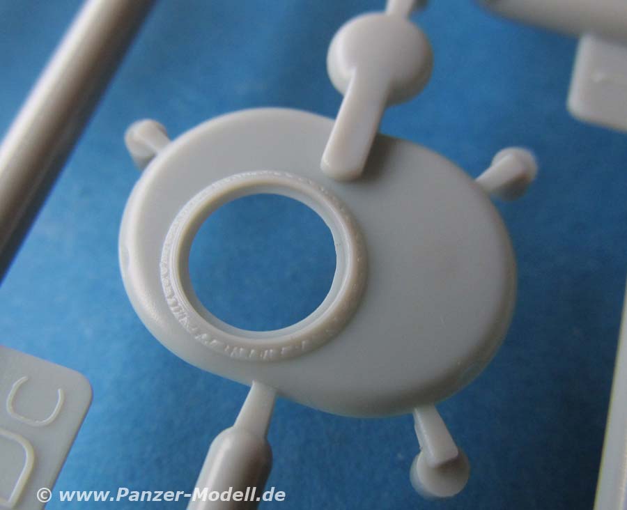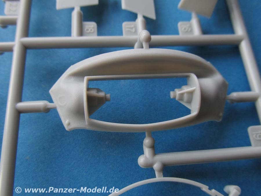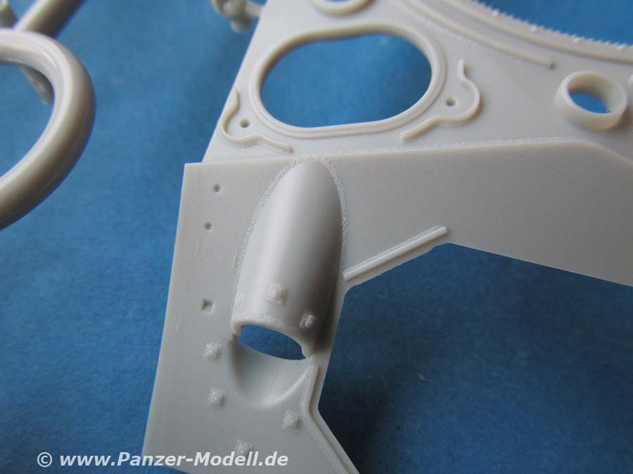 Alle Luken lassen sich auch offen darstellen und werden durch teilweise winzige PE Teile ergänzt. Absoluter Wahnsinn. Ähnliches gilt für die Schutzgitter der Scheinwerfer, die man wahlweise aus Plastik oder diversen PE Teilen bauen kann. Für die PE Teile liegen dankbarerweiseBiegeschablonen bei.