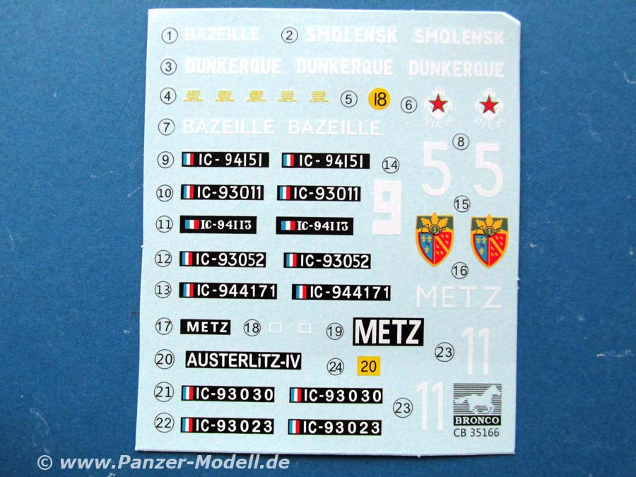 Der Decalbogen und die Bauanleitung bieten Markierungsvarianten für ganze 8 verschiedene Fahrzeuge: