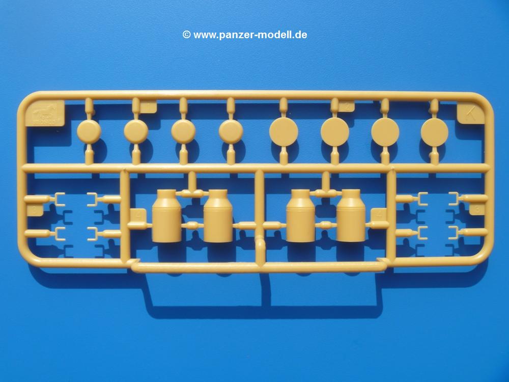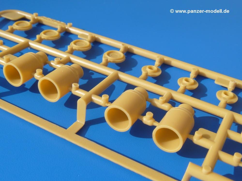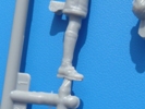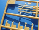 Der kleinste Spritzling G besteht aus 4 Teilen - dem Tank, dem ca. 1,5 Millimeter großen Tankdeckel und 2 Stützstangen für die Belüftungsklappen. Die Gabelung der Stützstangen ist so fein, dass konventioneller Plastikkleber diese Details gnadenlos auflösen wird. Hier also einen nicht auflösenden Kleber verwenden oder ein Tropfen Klarlack wird den gleichen Zweck erfüllen, da keine Last auf den Stangen liegen wird.