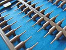 Die Kettenbolzen, die von beiden Seiten zum Verbinden eingesteckt werden, sind sehr fein und filigran mit verdicktem Endkopf. Dabei muss man aufpassen, denn es gibt zwei verschiedene Typen dieser Bolzen, einmal mit einem dicken, einmal mit einem flachen Endkopf.