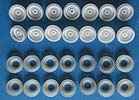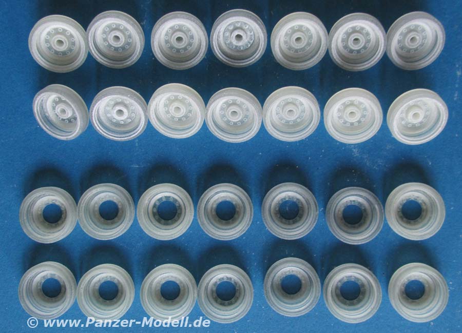 Im Set enthalten sind 28 Bauteile zum Bau von 14 Doppellaufrollen für die M48 und M60 Baureihe.