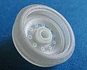 Die Laufrolle setzt sich aus je einem Innen- und Aussenteil zusammen. Die Aufnahme für die Schwingarme mit Aussenabschluss ist mit in das Innenteil eingearbeitet.