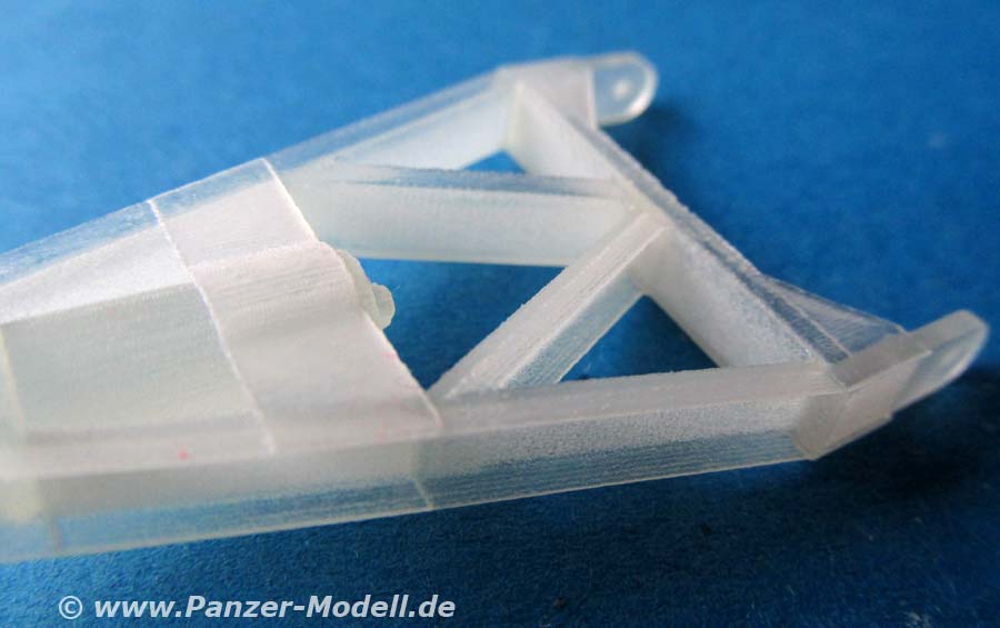 Das zweite Bauteil entpuppt sich bei genauer Betrachtung als Angussteil für 4 winzige Bauteile - zwei Ösen und zwei Streben.