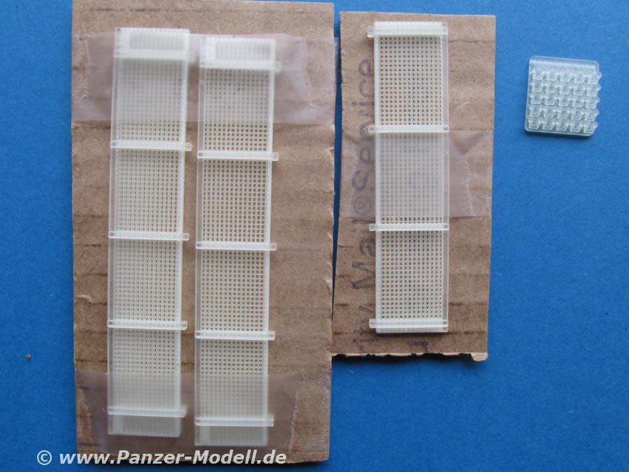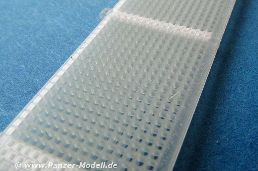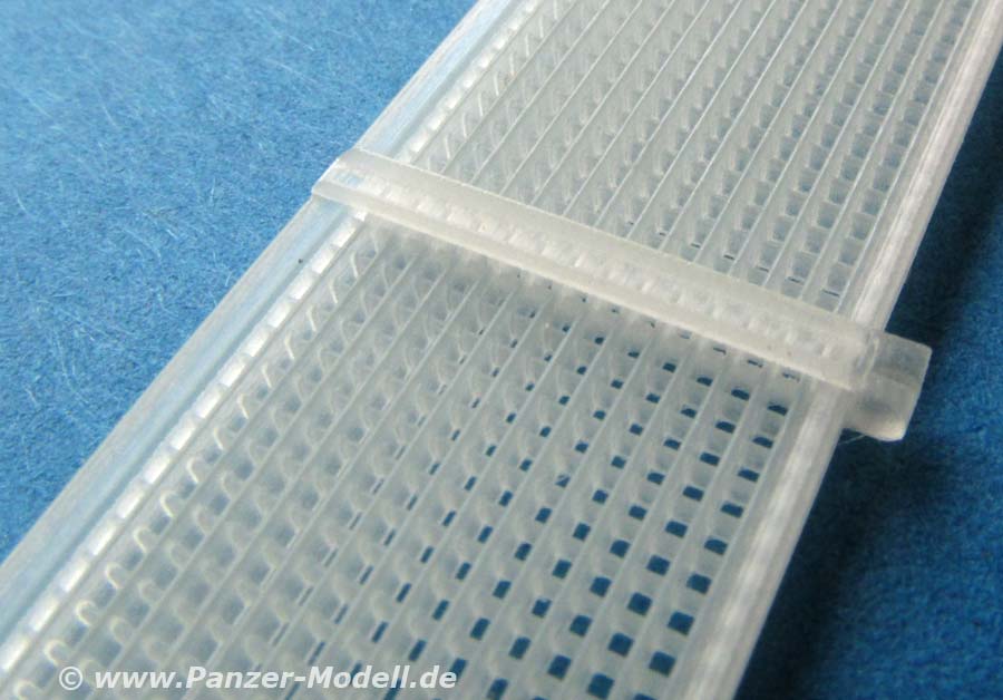 Die Seitenteile ersetzen komplett die entsprechenden Seitenteile aus dem Dragon Bausatz. Warum diese ersetzen wo sie doch so schöne PE Teile für das Gitter beinhalten? Ganz einfach - das PE Gitter ist schlicht und ergreifend zu dünn und ohne Tiefe. Diese Seitenteile waren aber wie Lattenroste gearbeitet und daher von nicht unbeträchtlicher Materialstärke. Dies ist in diesem Set berücksichtigt .