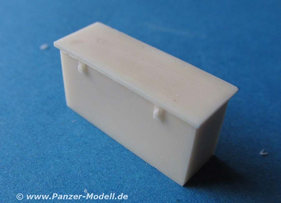 Sehr schön gemacht sind die Munitionstrommeln für die Waffen mit schönen Details und sichtbarer Munition. Zusätzlich hat der Hersteller dem Bausatz einige große Munitionskisten beigefürgt, die auf dem Panzer IV Fahrgestell untergebracht werden. Es sind sogar offene Kisten mit separatem Deckel dabei, die im inneren die gegurtete Munition haben - sehr schön gemacht und ist am fertigen Modell bemalt sicher ein Hinkucker.