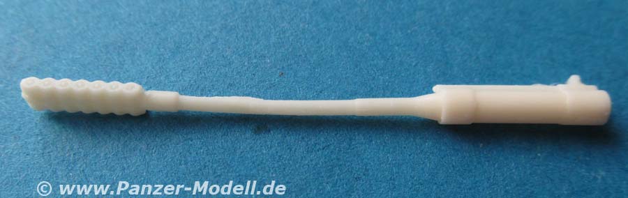 Die Rohre der 3cm Waffen sind aus Resin gegossen, was mir persönlich jetzt nicht sooo zusagt, da hier doch schnell mal verzug sichtbar ist und auch die Feinheiten der ungeöhnlichen Mündungsbremse nicht so dargestellt werden kann, wie als Metalldrehteil. Aber, wie man am gebauten Modell sieht, sieht es am ende doch sehr ansehnlich aus. und es gibt derzeit kein Metall 3cm Flakrohr für die reine Flakwaffe - was Schatton anbietet ist für den Kigelblitz und ist in der Basis anders.