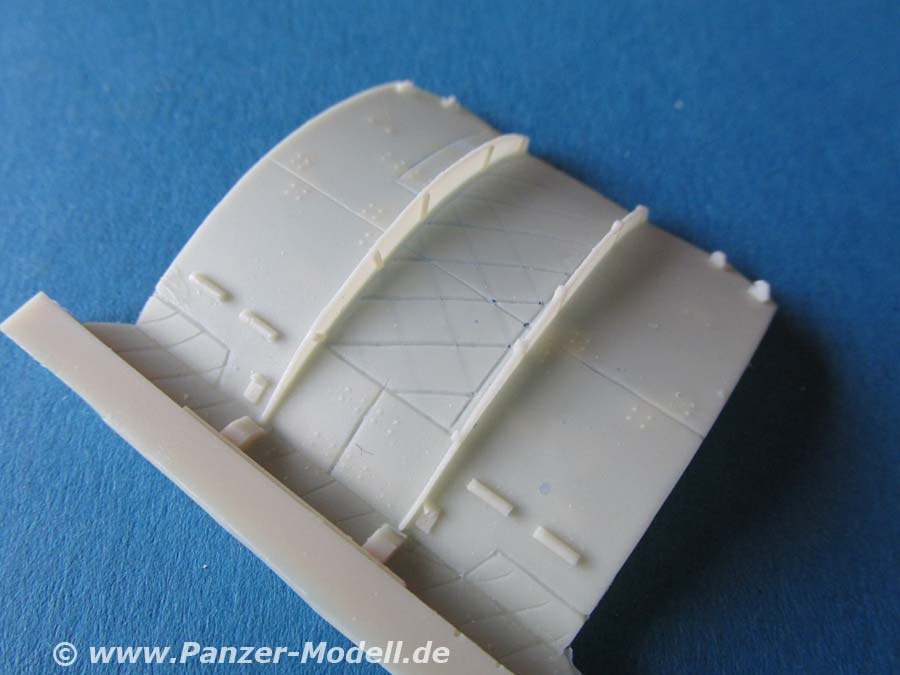 Der Guss der Resinteile ist wieder mal ausgezeichnet, sehr schön detailliert und teilweise extrem filigran, sodass man bim Versäubern aufpassen muss, diese nicht zu zerbrechen oder zu verlieren, da sie so klein sind. Hier und da finden sich dünne Fischhäute um die Filigrangussteile, aber die sind mit einem Skalpell schnell entfernt. Dies betrifft im Extremfall rund 30 feine Flügelmuttern, die sauber gegossen sind und sowohl beeindruckend im Guss wie auch herausfordernd in der Verarbeitung sein dürften