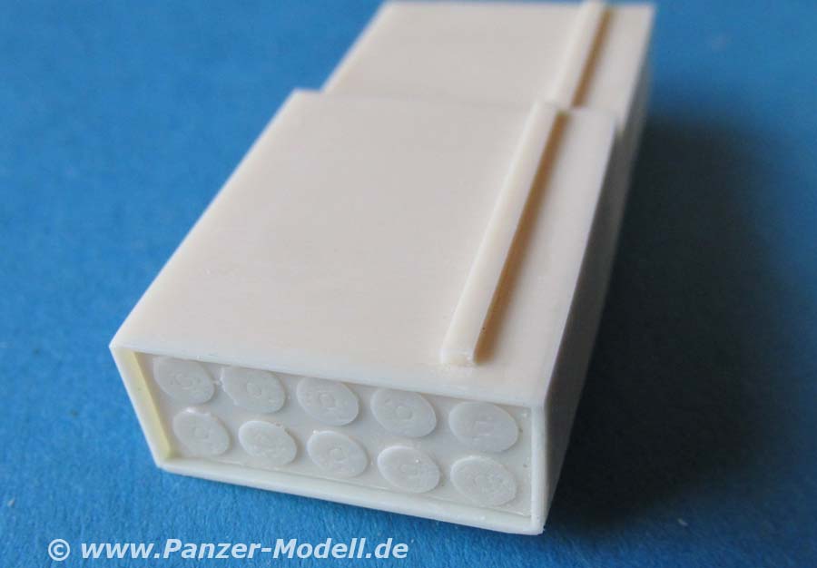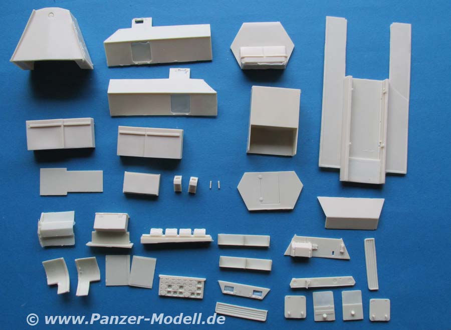 Der Guss der Resinteile ist wieder mal ausgezeichnet, sehr schön detailliert und fehlerfrei gegossen. Erfreulich dass dies ohne Luftblasen, Formversatz oder gerade bei den vielen großen und flächigen Teilen auch ohne nennenswerten Verzug.