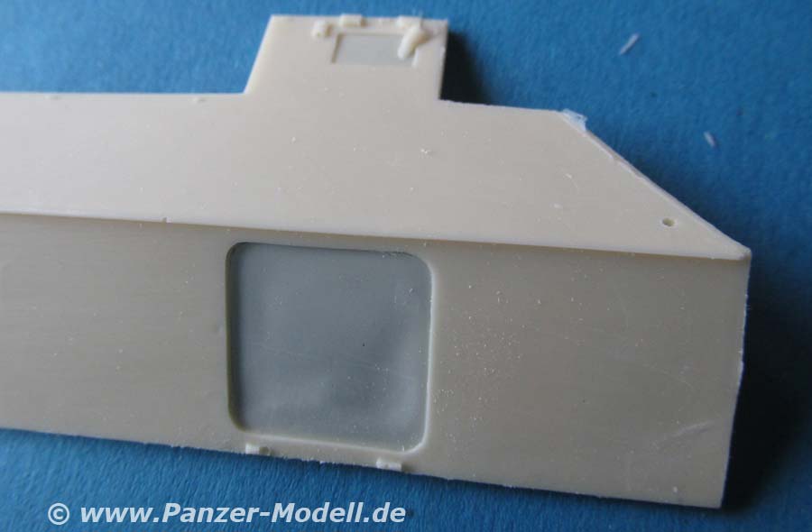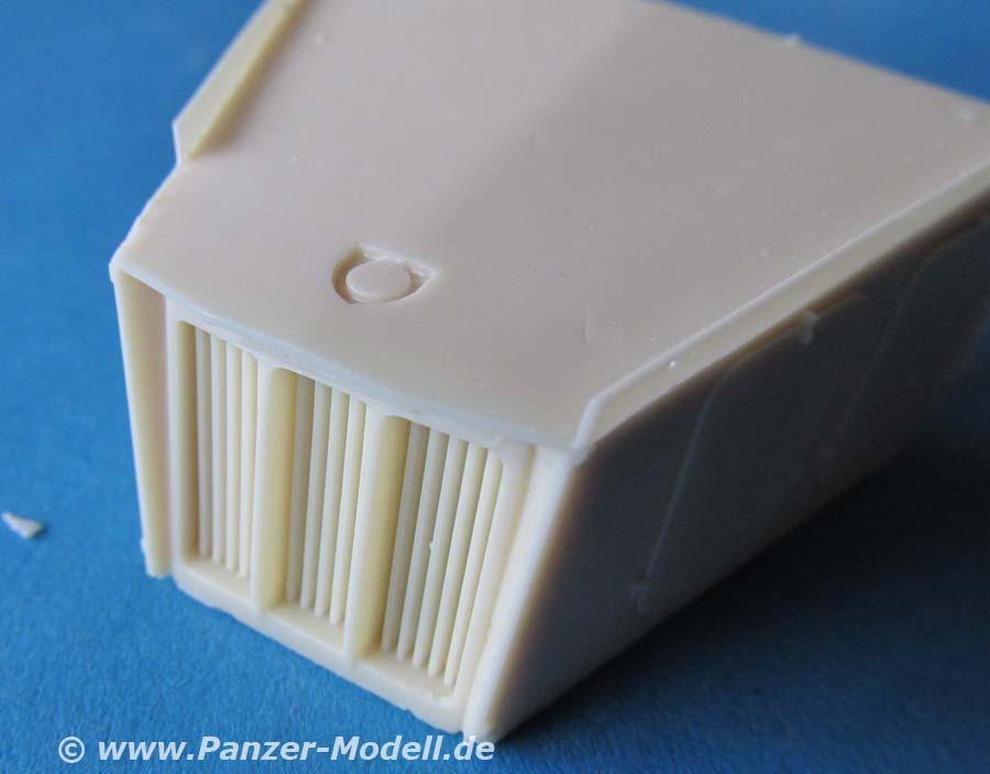 Die Ausführung dieser recht großen Bauteile ist, wie eingangs erwähnt, sehr gur und sauber. Auch die komplett neue Motorraumabdeckung macht einen ausgezeichneten Eindruck Diese wird vorn durch eine gewinkelte Panzerplatte nach vorn abgeschlossen.