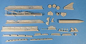 In dem Set finden sich knapp über 40 Resinteile zum Bau der Fla-Rakete und des Transportwagens.