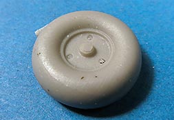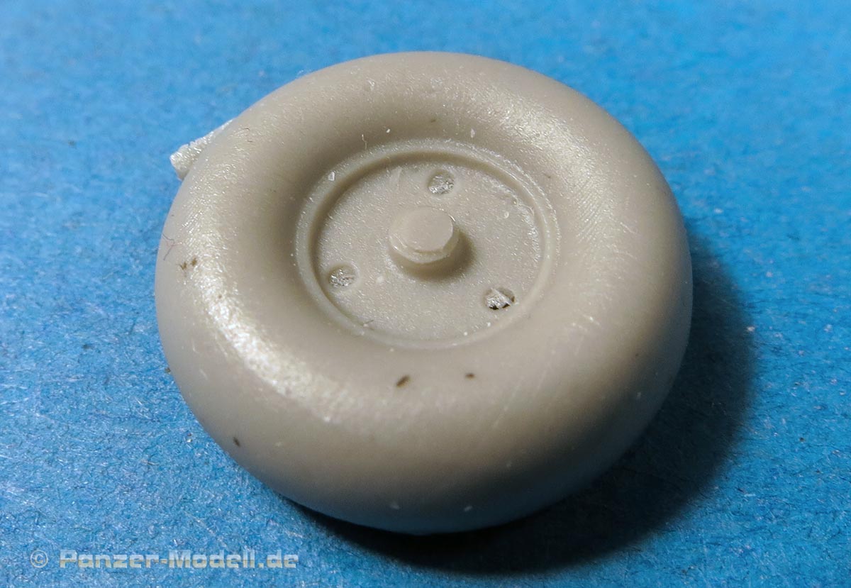 Die drei Räder für den Karren machen einen guten Eindruck mit nur kleinem Anguss. Die Löcher in den Felgen müssten noch etwas aufgebohrt werden.